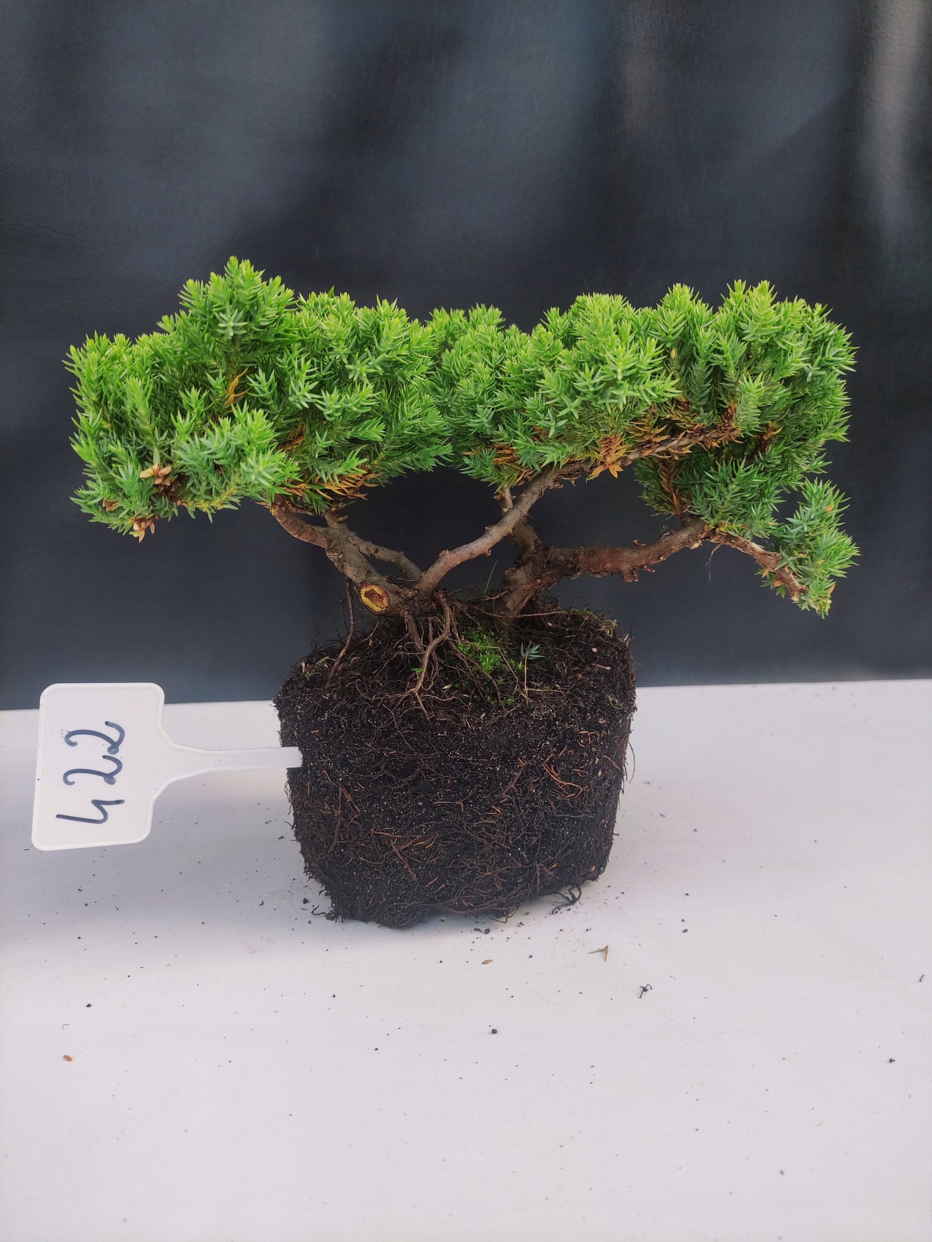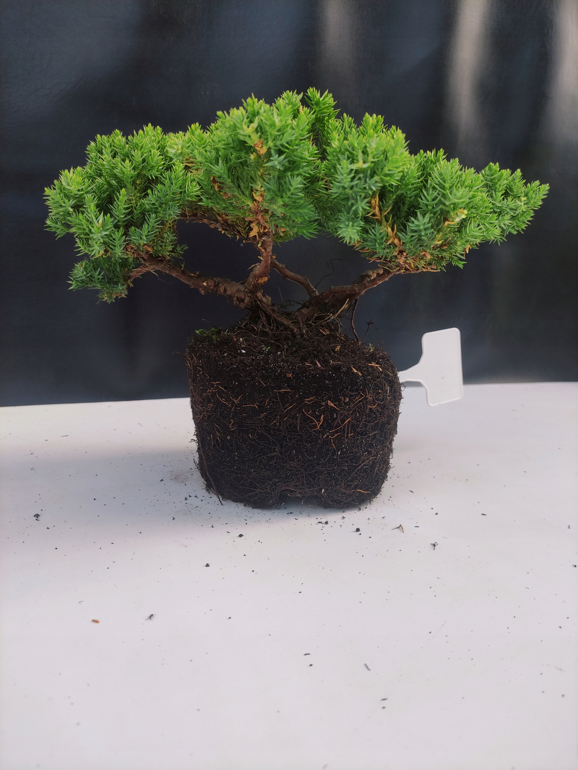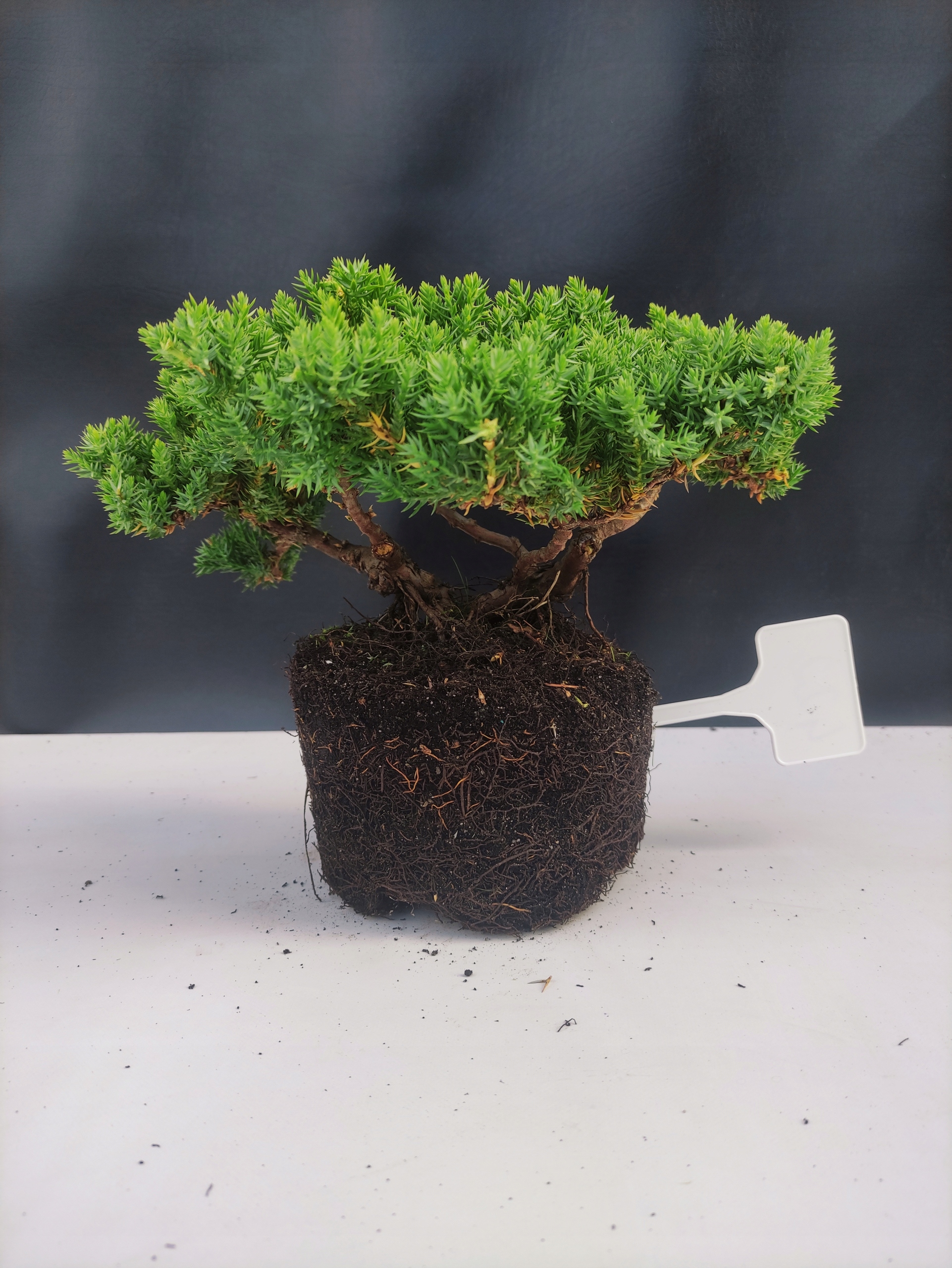 Każde nasze drzewko bonsai to unikalny egzemplarz, dlatego każde zostaje wystawione osobno, ponieważ traktujemy każde indywidualnie – od formowania po pielęgnację. Jałowce te są w naszych rękach od 2021 roku i obecnie mają już 10 lat, dzięki czemu prezentują się wyjątkowo dojrzale i stabilnie.