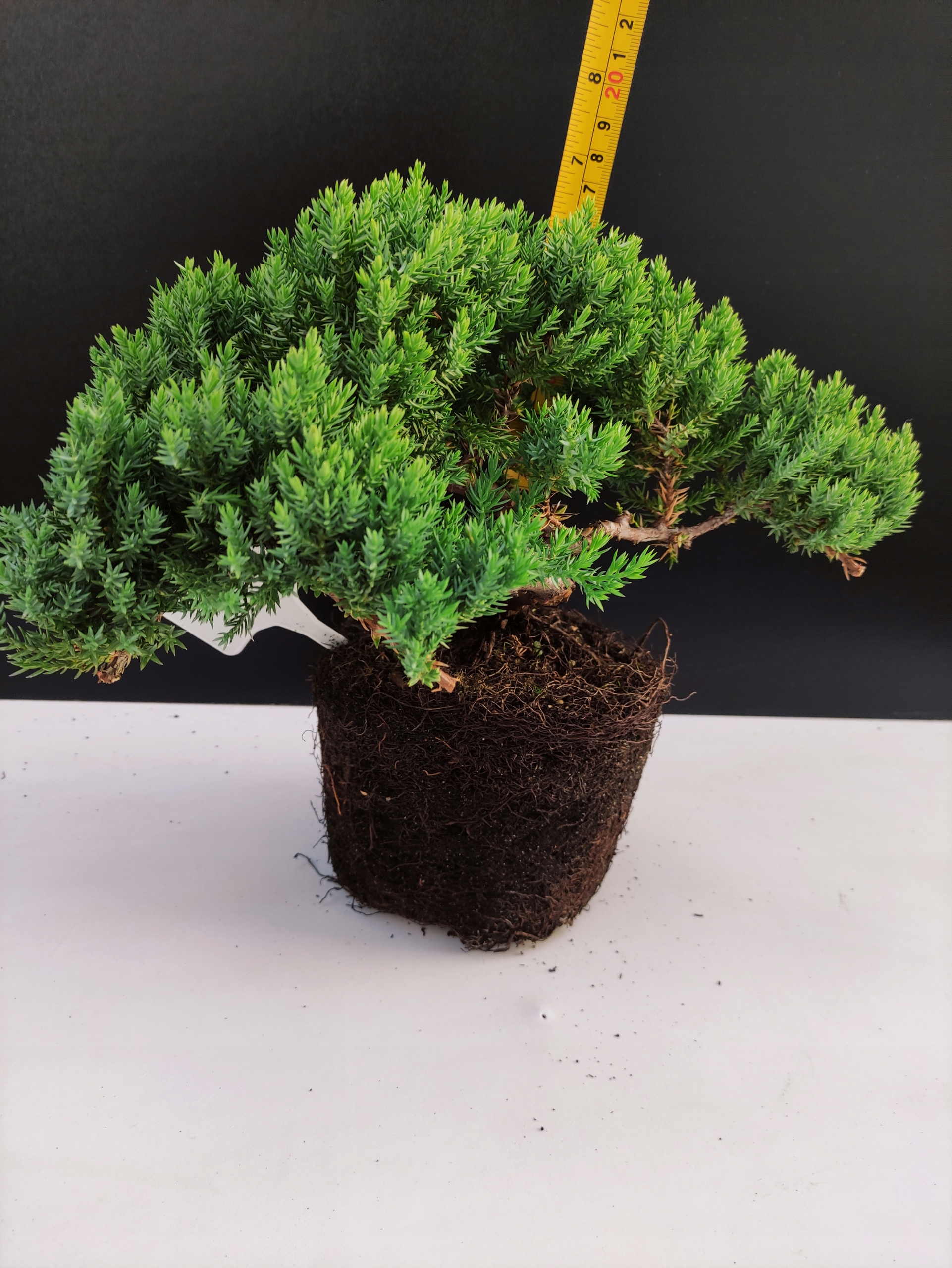 Każde nasze drzewko bonsai to unikalny egzemplarz, dlatego każde zostaje wystawione osobno, ponieważ traktujemy każde indywidualnie – od formowania po pielęgnację. Jałowce te są w naszych rękach od 2021 roku i obecnie mają już 10 lat, dzięki czemu prezentują się wyjątkowo dojrzale i stabilnie.