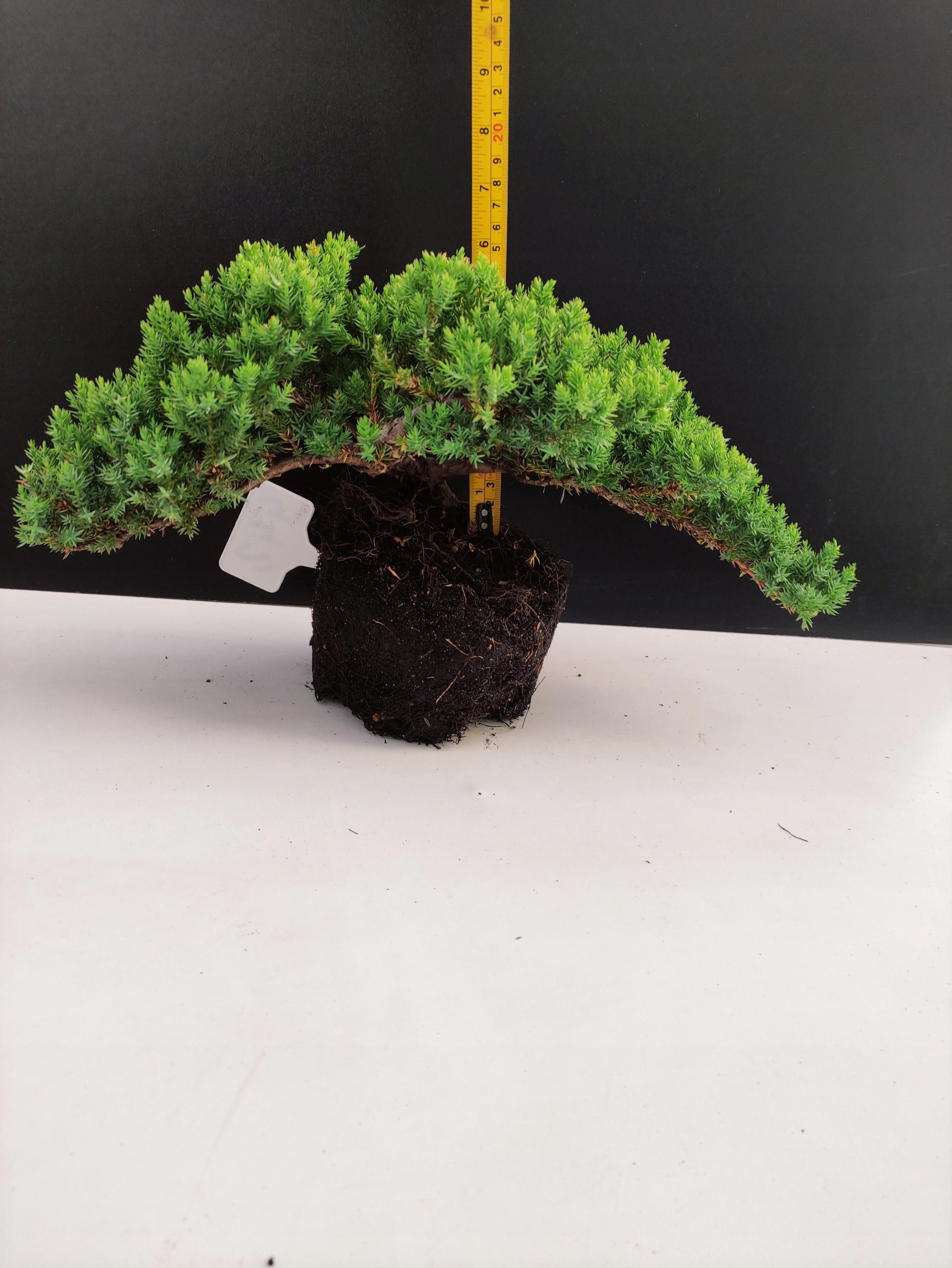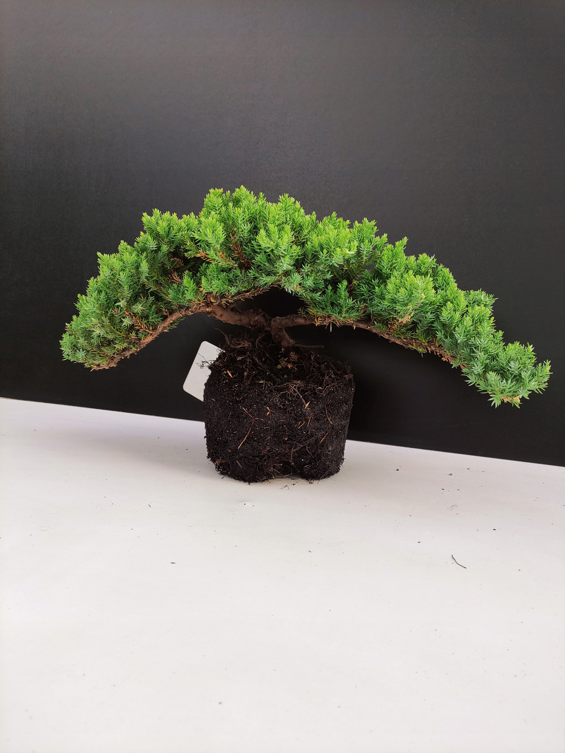 Jałowiec (Juniperus procumbens) to klasyczne bonsai z rodziny zimozielonych – zachowuje igły przez cały rok, nawet zimą. Dzięki temu cieszy oko niezależnie od pory roku, prezentując się elegancko i stabilnie przez cały sezon.