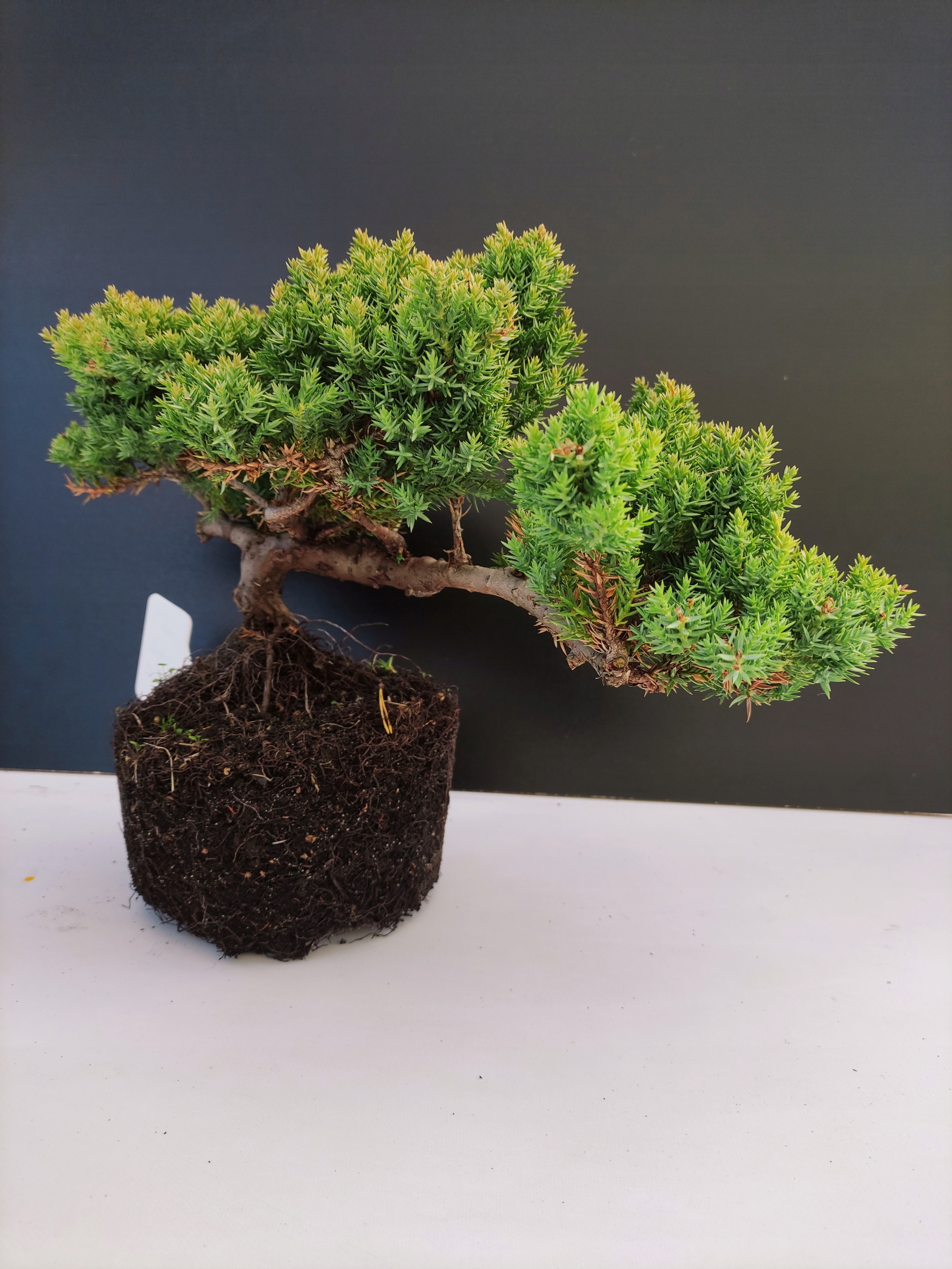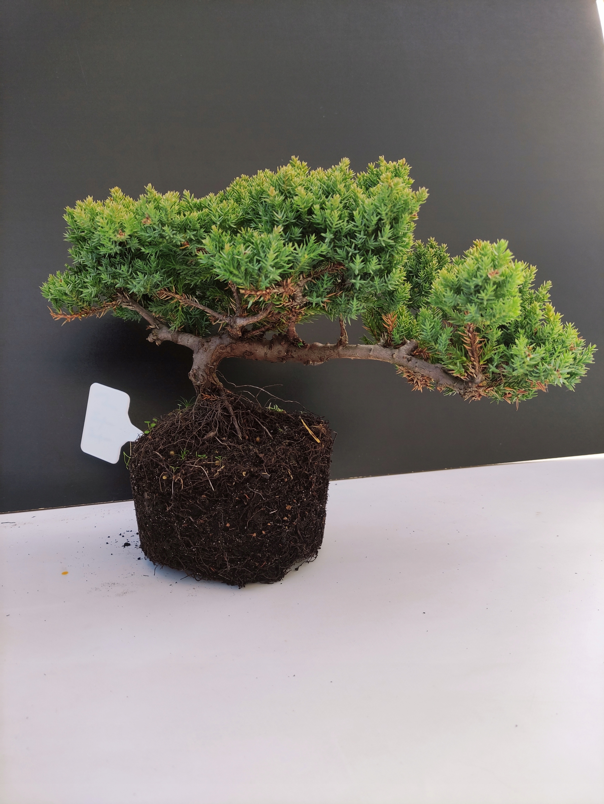Każde nasze drzewko bonsai to unikalny egzemplarz, dlatego każde zostaje wystawione osobno, ponieważ traktujemy każde indywidualnie – od formowania po pielęgnację. Jałowce te są w naszych rękach od 2021 roku i obecnie mają już 10 lat, dzięki czemu prezentują się wyjątkowo dojrzale i stabilnie.