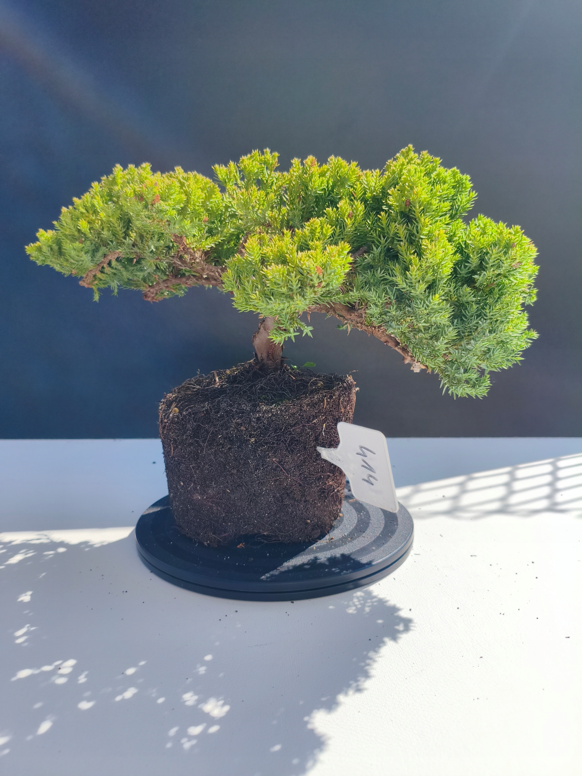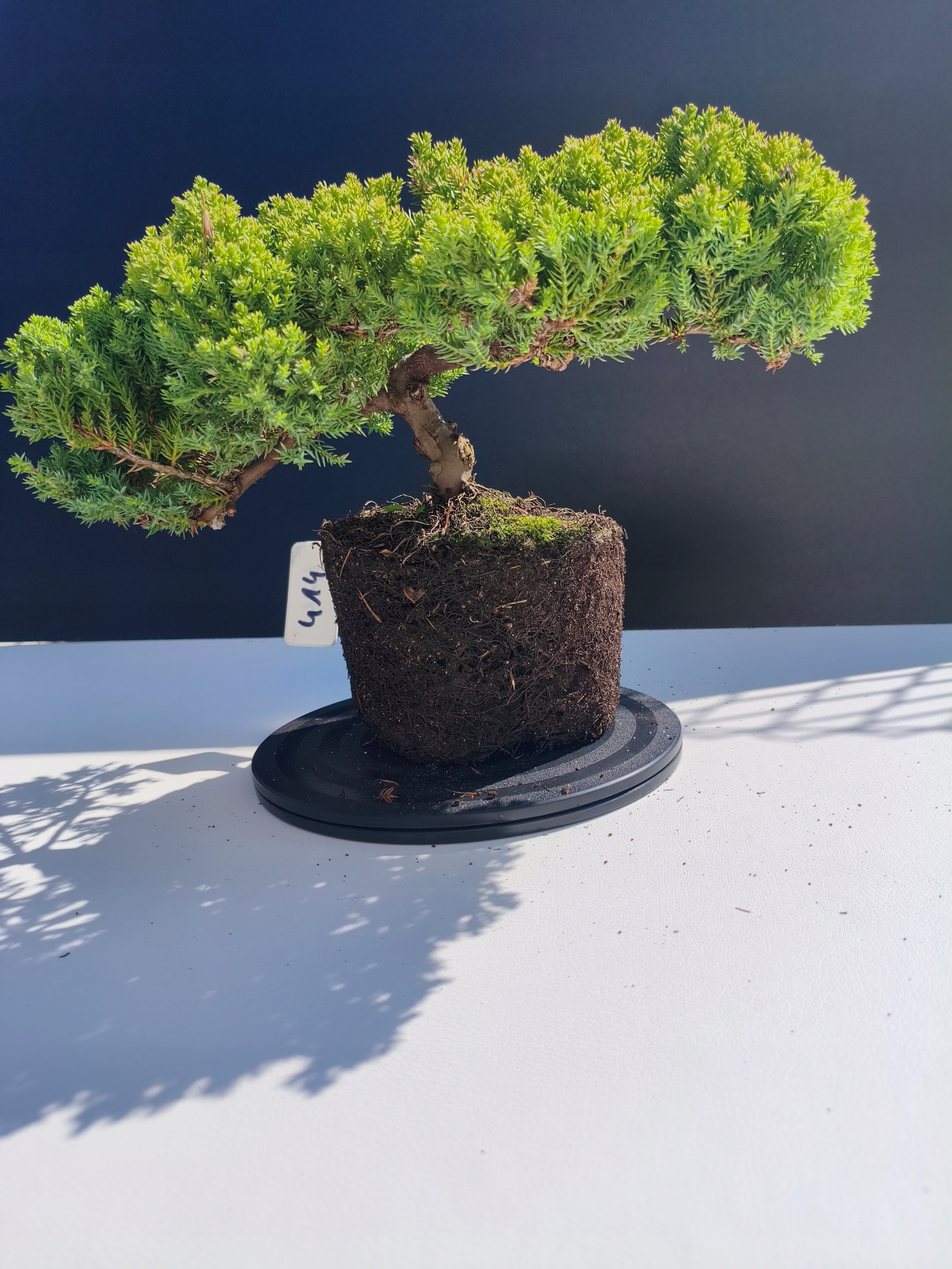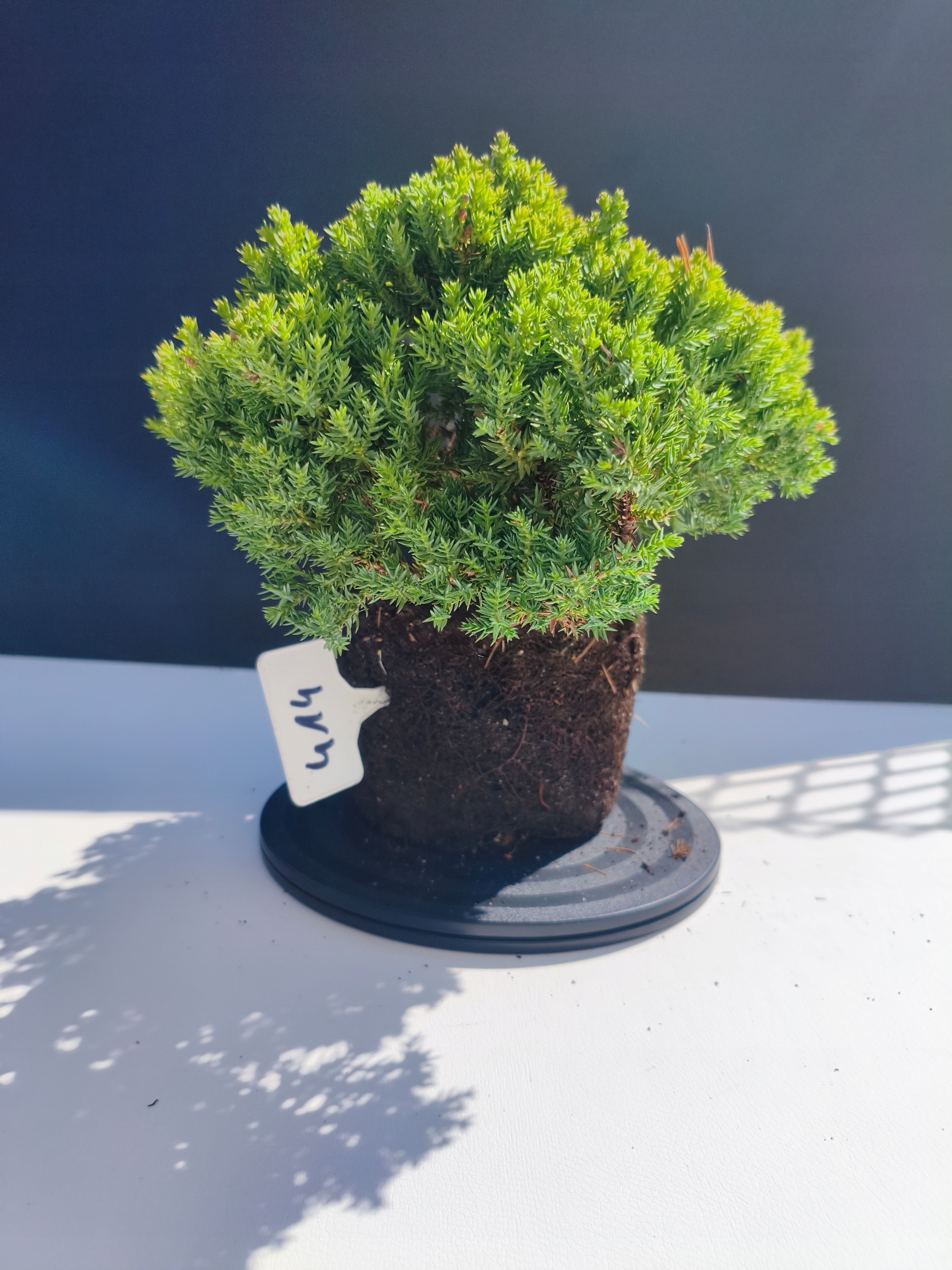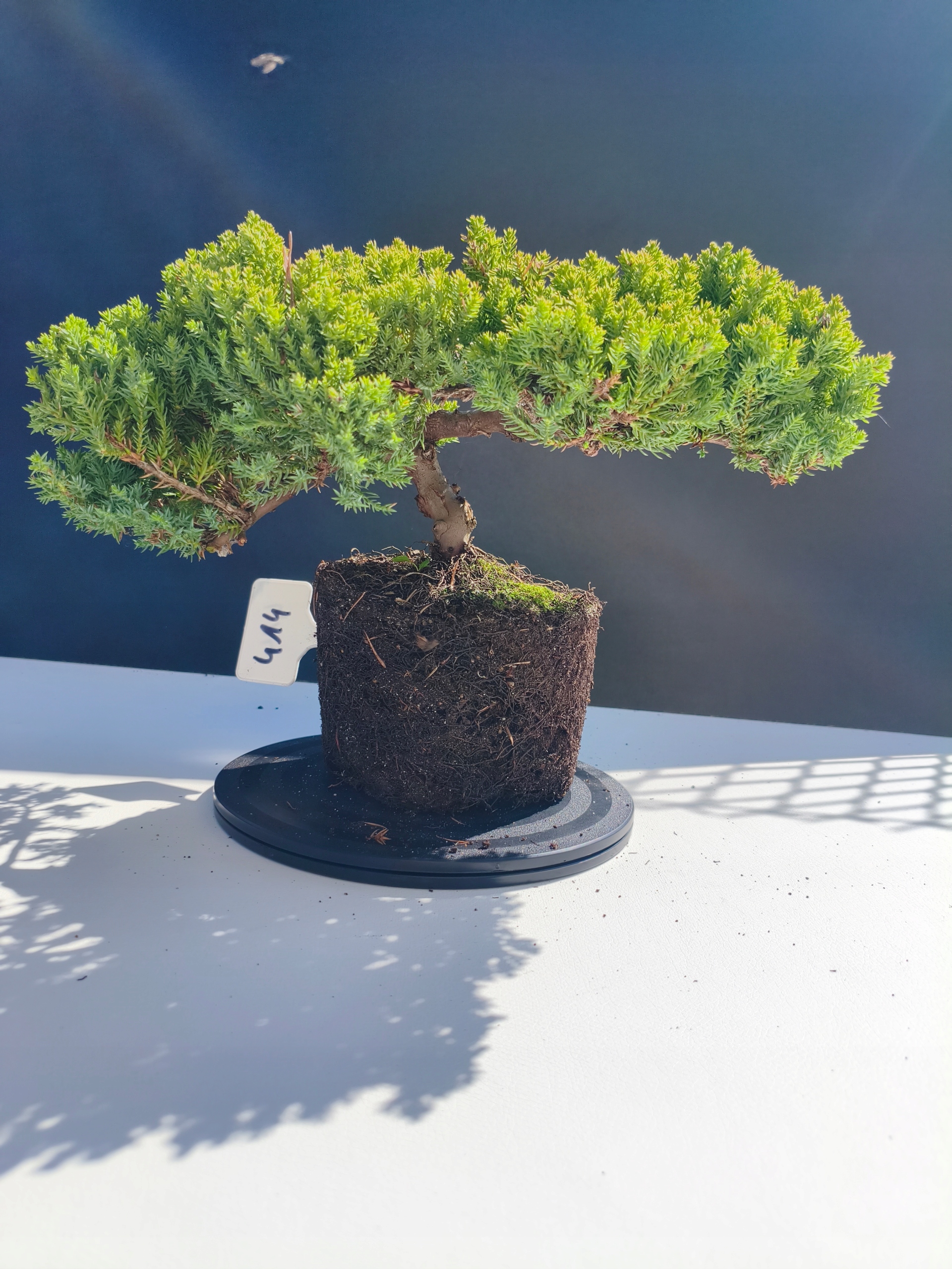 Każde nasze drzewko bonsai to unikalny egzemplarz, dlatego każde zostaje wystawione osobno, ponieważ traktujemy każde indywidualnie – od formowania po pielęgnację. Jałowce te są w naszych rękach od 2021 roku i obecnie mają już 11 lat, dzięki czemu prezentują się wyjątkowo dojrzale i stabilnie.