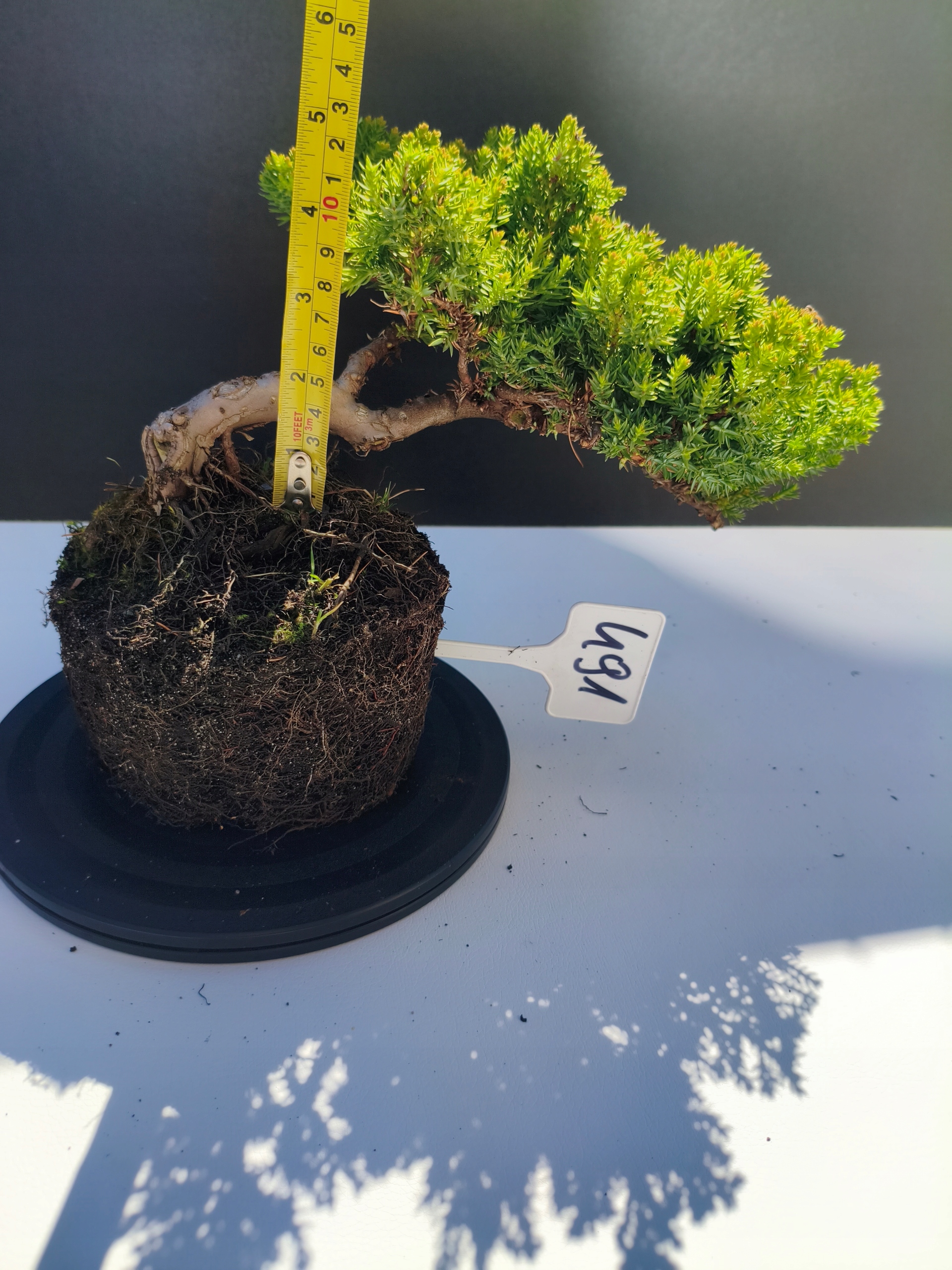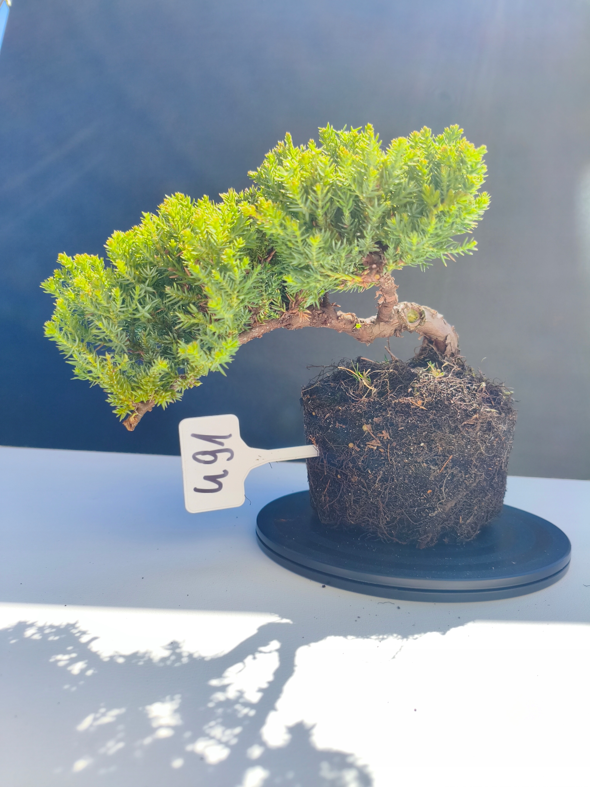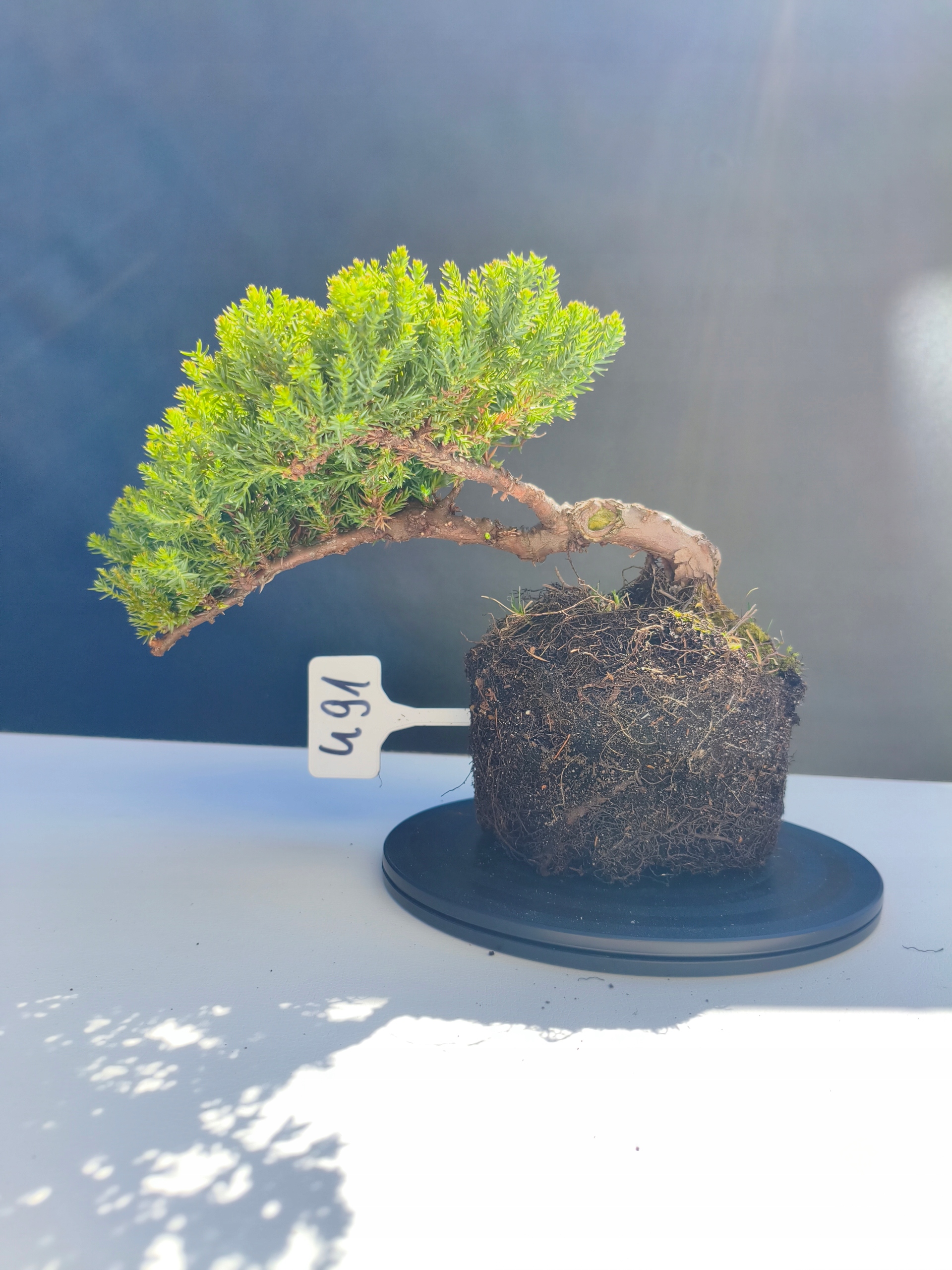 Każde nasze drzewko bonsai to unikalny egzemplarz, dlatego każde zostaje wystawione osobno, ponieważ traktujemy każde indywidualnie – od formowania po pielęgnację. Jałowce te są w naszych rękach od 2021 roku i obecnie mają już 11 lat, dzięki czemu prezentują się wyjątkowo dojrzale i stabilnie.