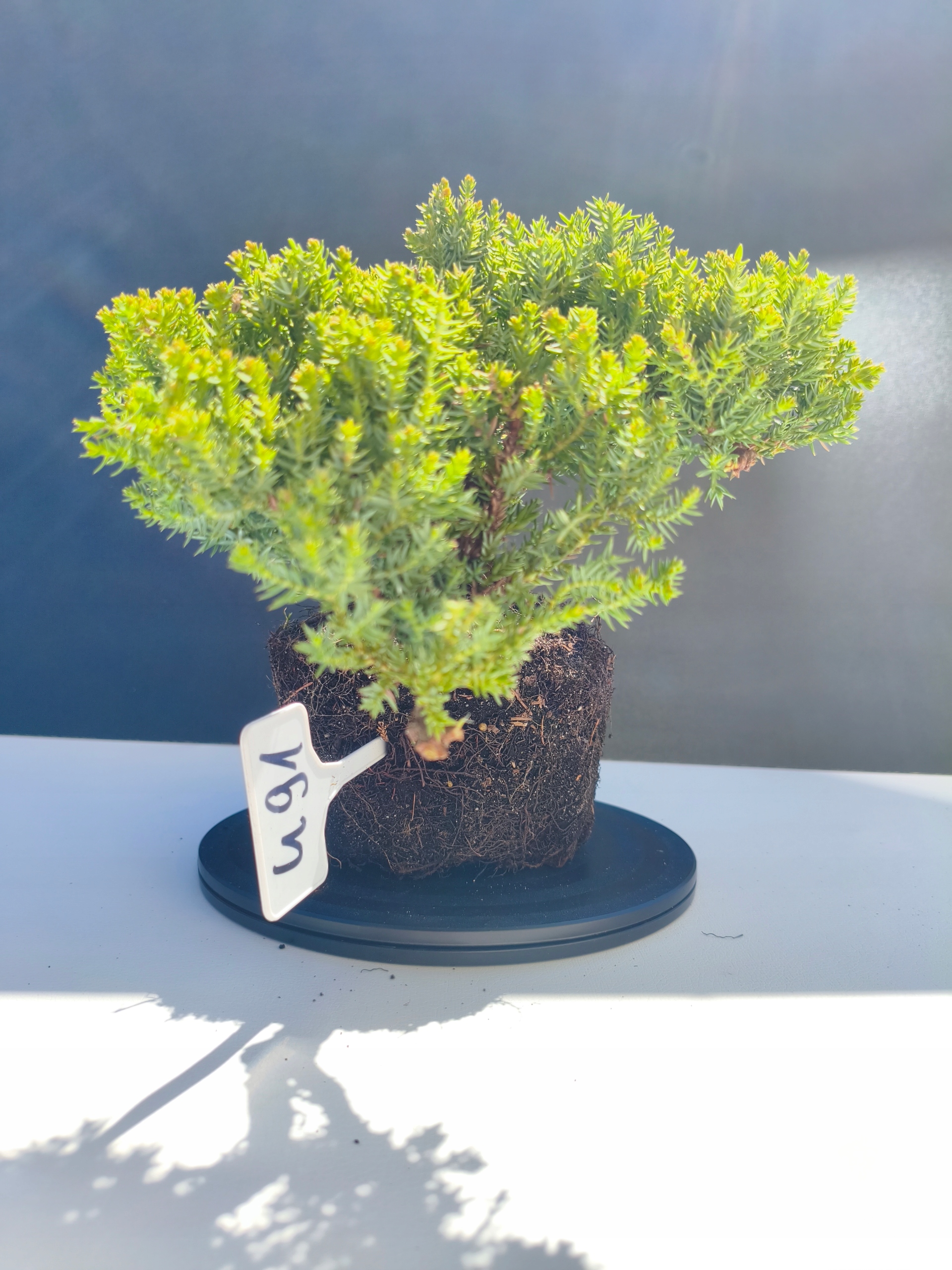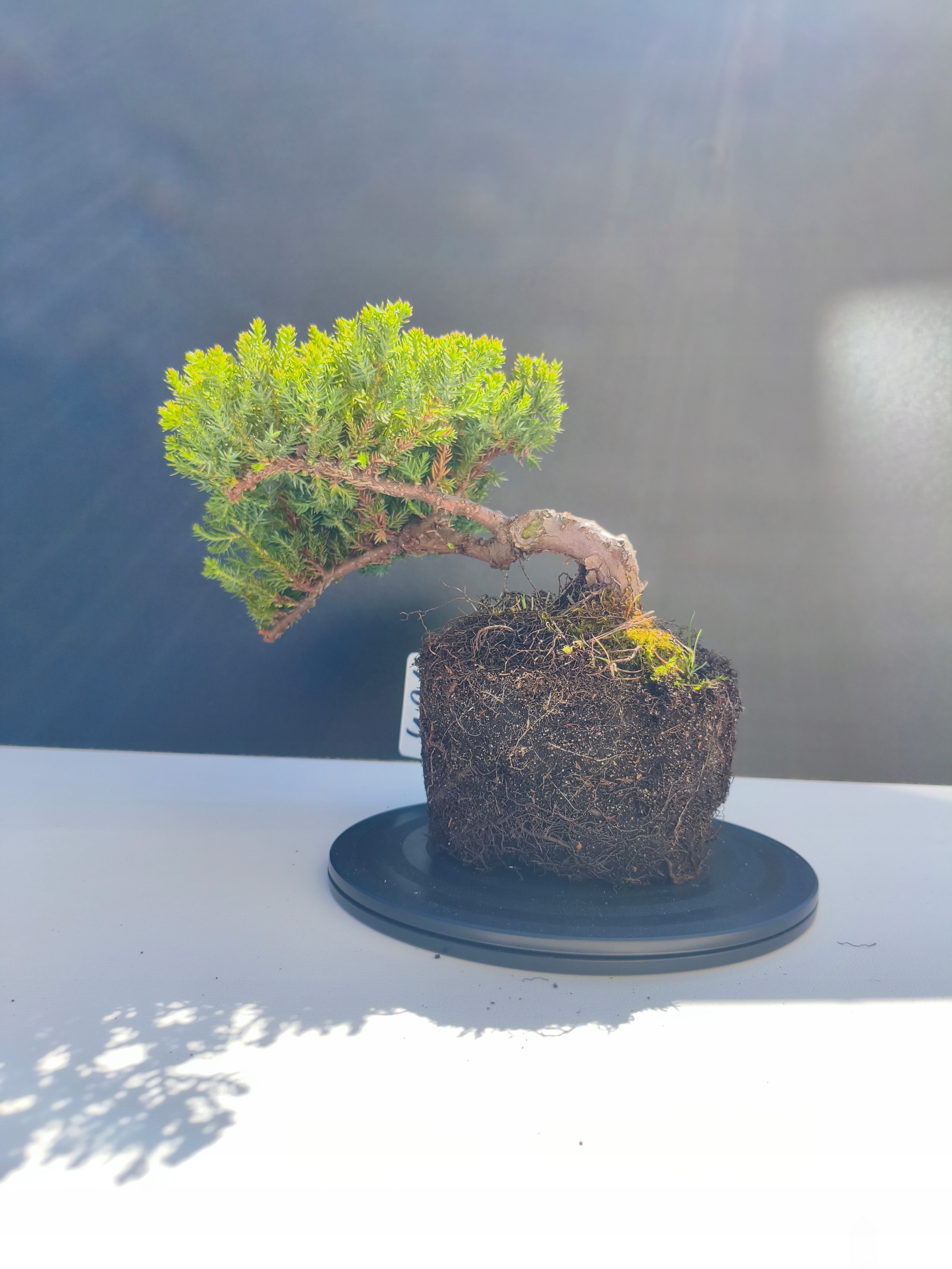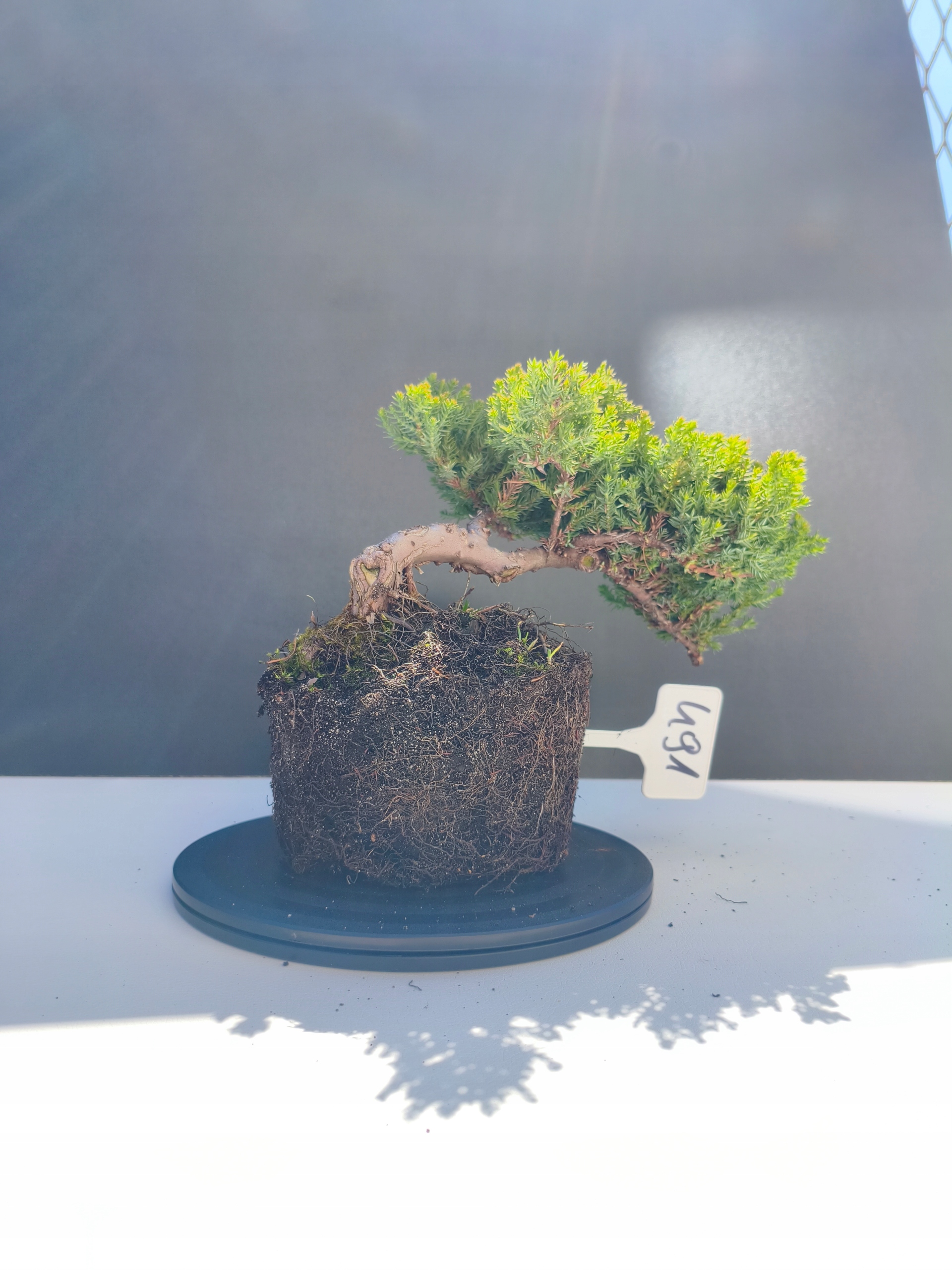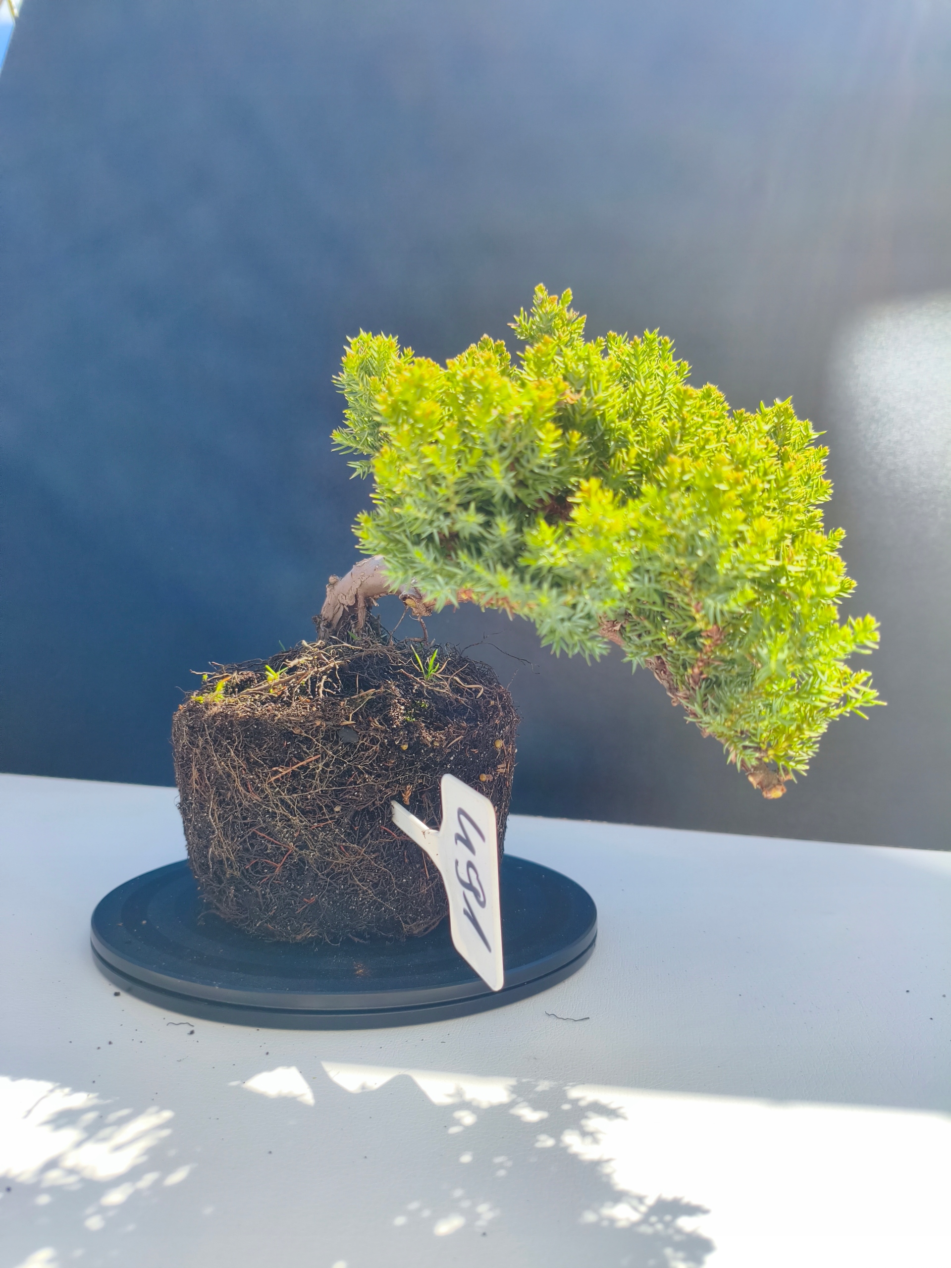 Każde nasze drzewko bonsai to unikalny egzemplarz, dlatego każde zostaje wystawione osobno, ponieważ traktujemy każde indywidualnie – od formowania po pielęgnację. Jałowce te są w naszych rękach od 2021 roku i obecnie mają już 11 lat, dzięki czemu prezentują się wyjątkowo dojrzale i stabilnie.
