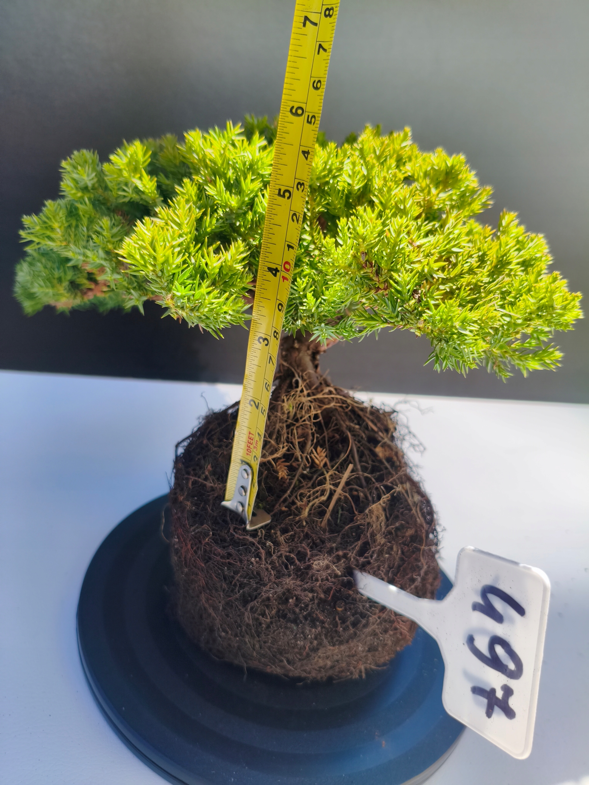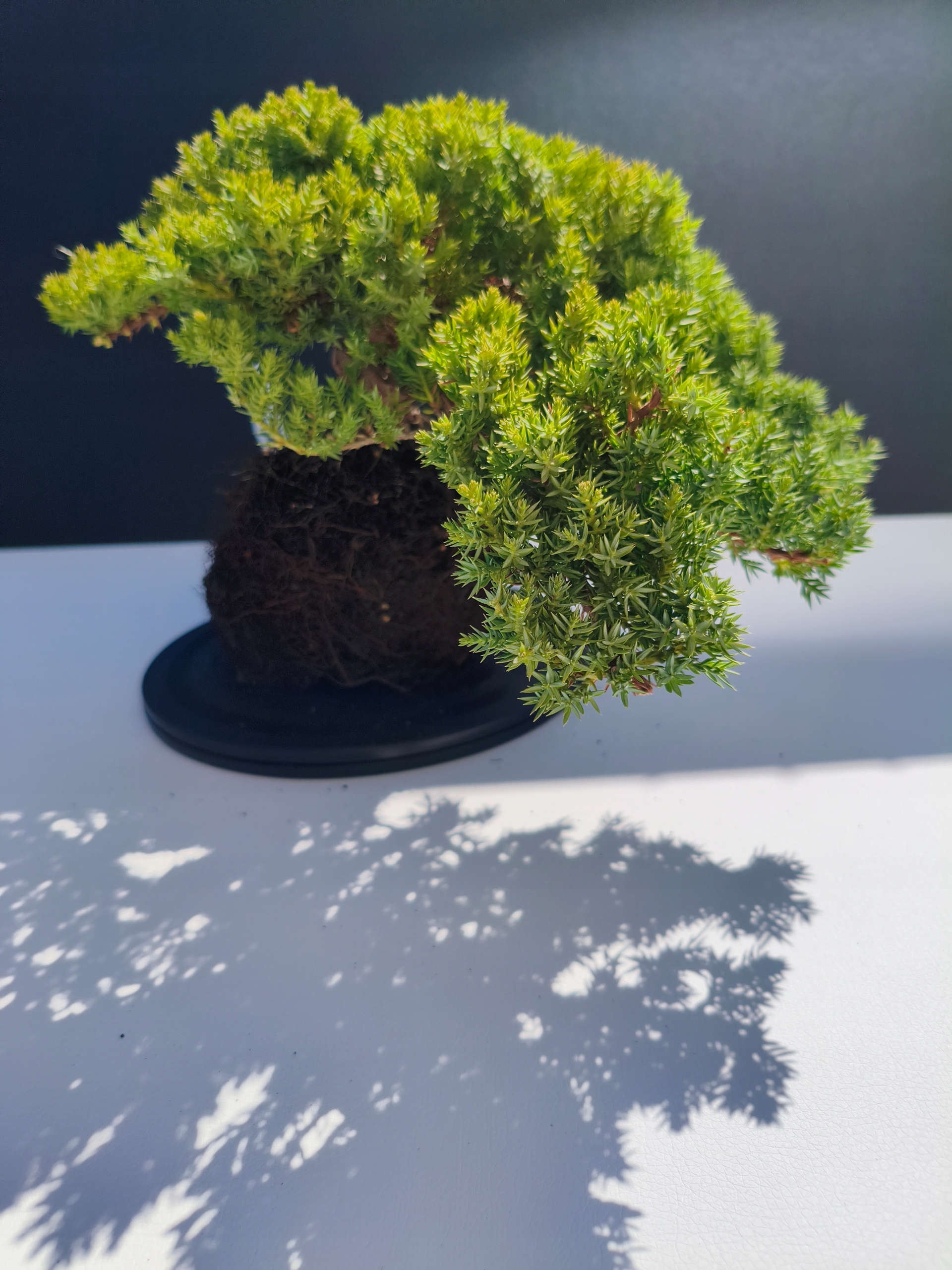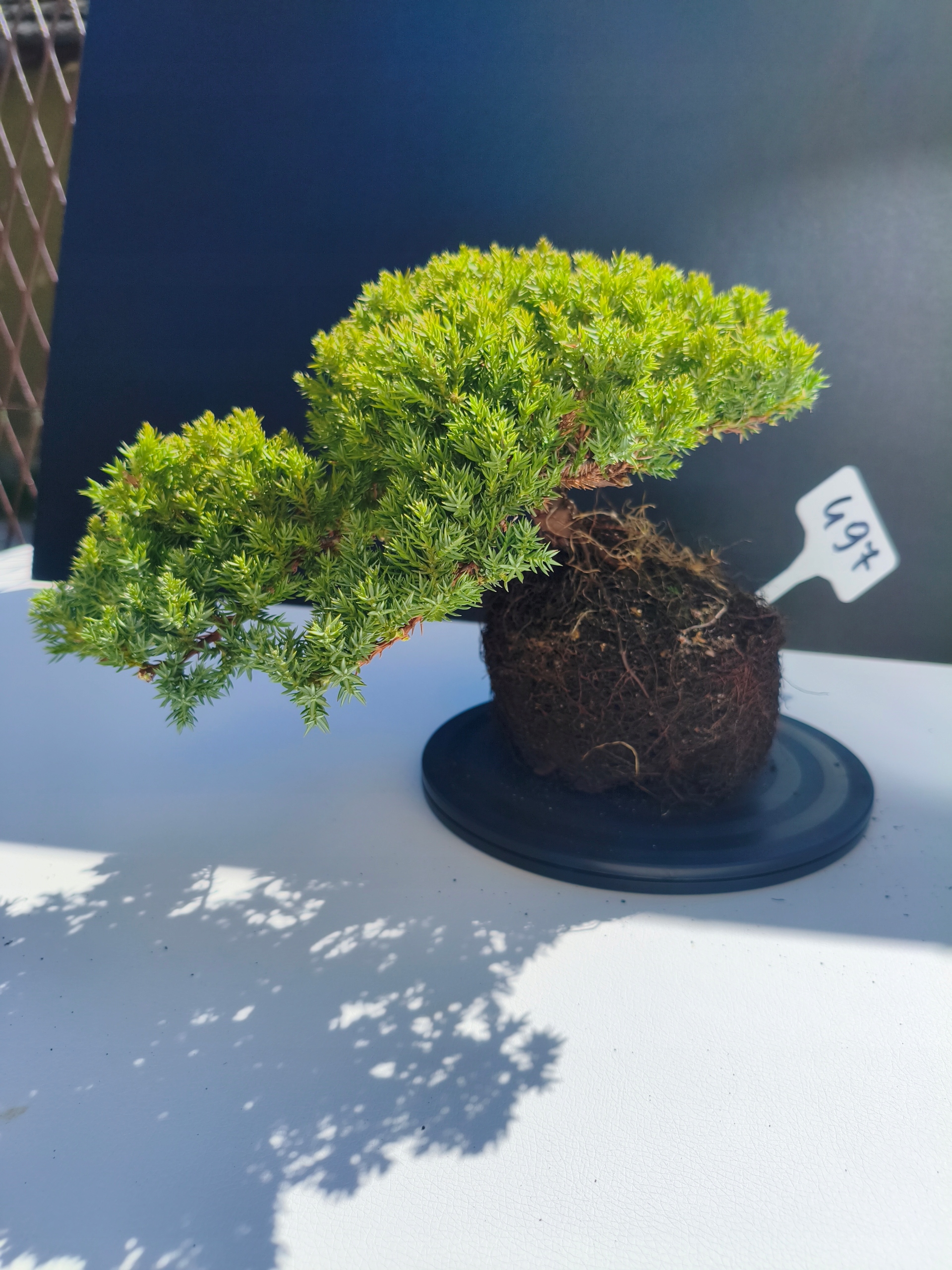 Każde nasze drzewko bonsai to unikalny egzemplarz, dlatego każde zostaje wystawione osobno, ponieważ traktujemy każde indywidualnie – od formowania po pielęgnację. Jałowce te są w naszych rękach od 2021 roku i obecnie mają już 11 lat, dzięki czemu prezentują się wyjątkowo dojrzale i stabilnie.