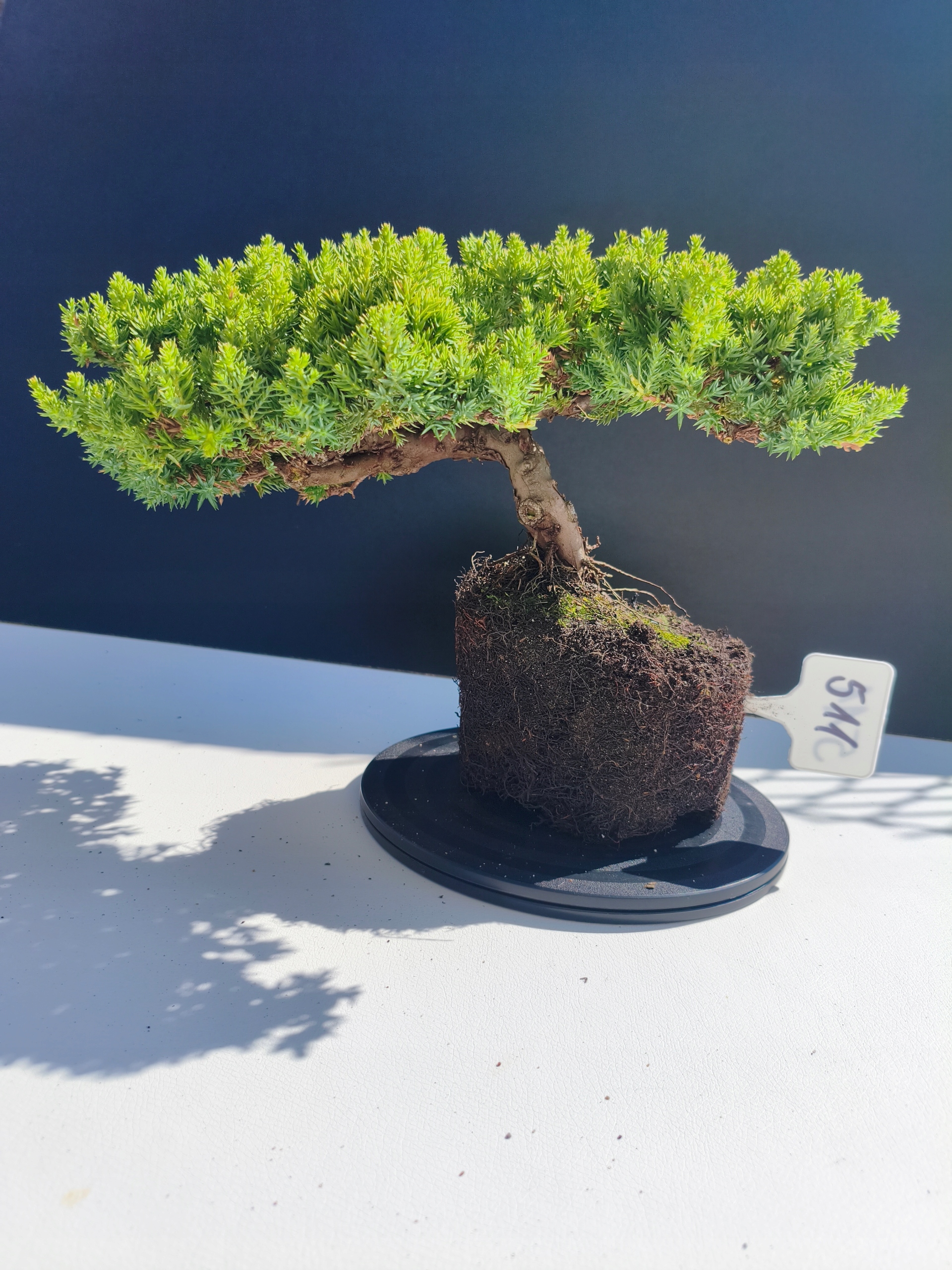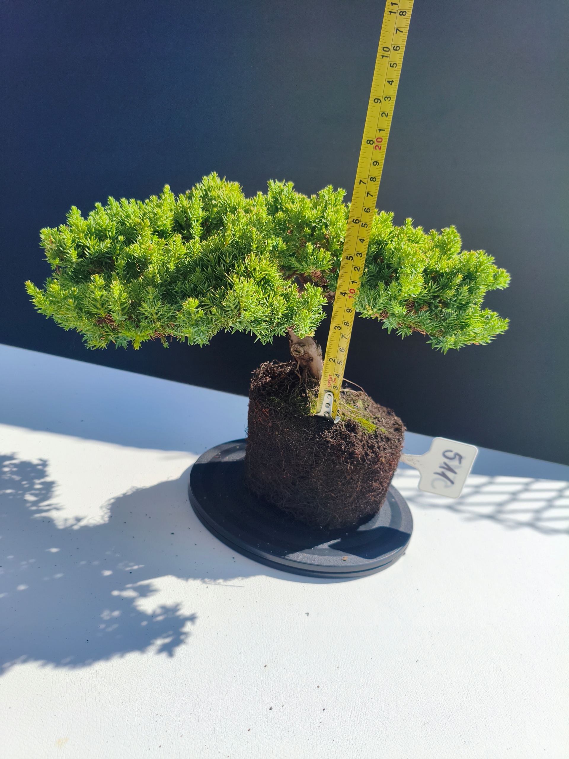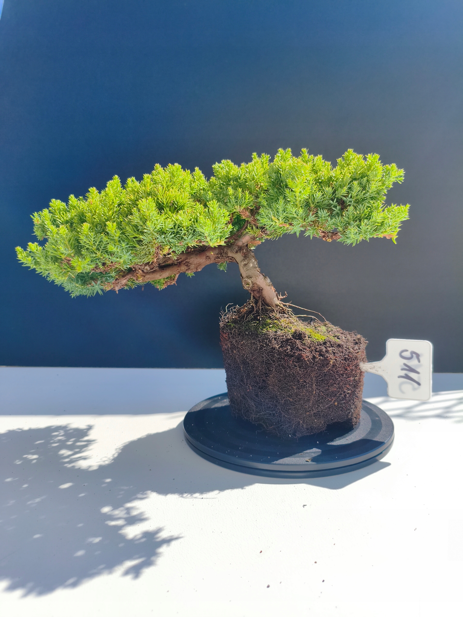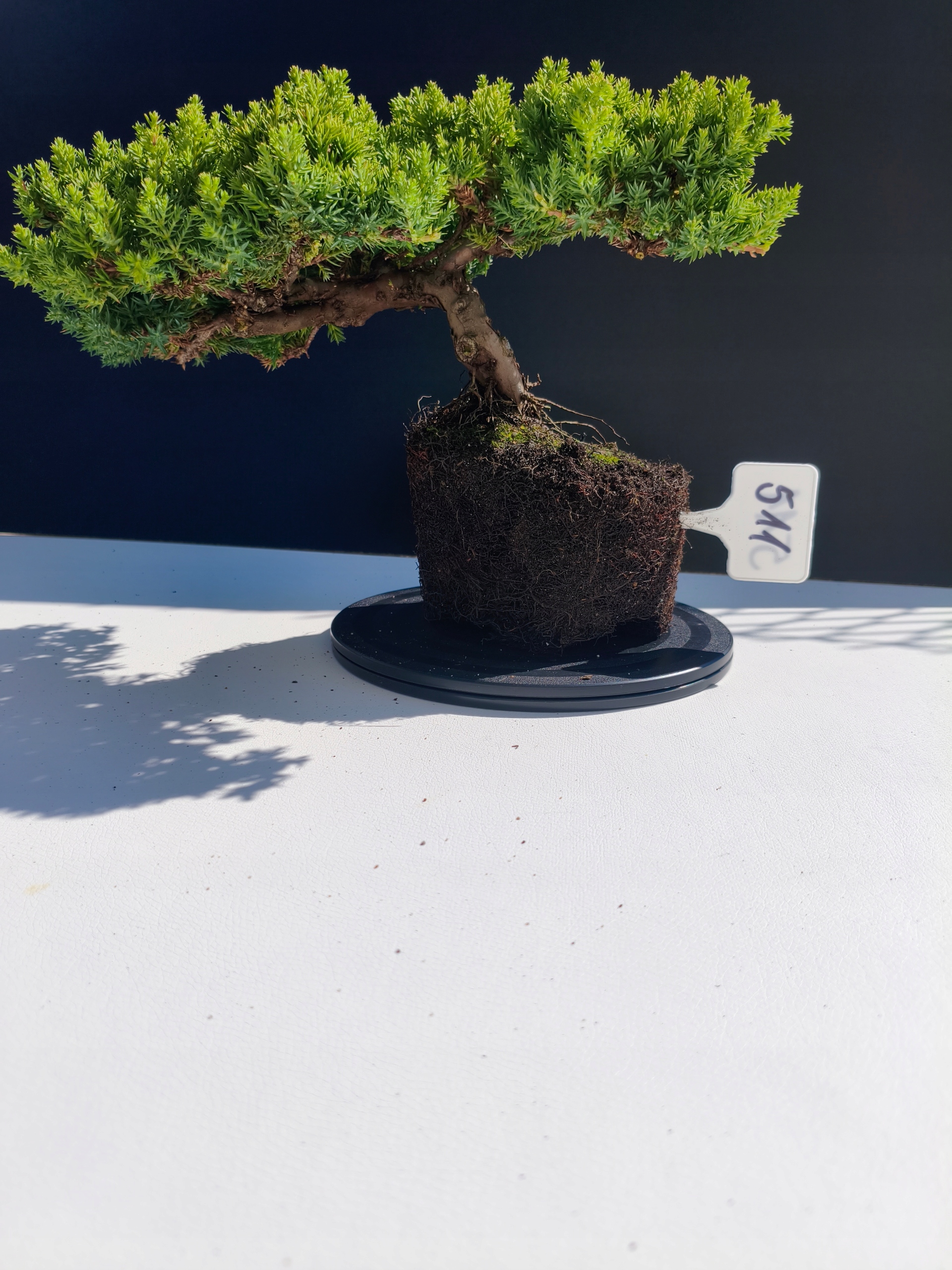 Każde nasze drzewko bonsai to unikalny egzemplarz, dlatego każde zostaje wystawione osobno, ponieważ traktujemy każde indywidualnie – od formowania po pielęgnację. Jałowce te są w naszych rękach od 2021 roku i obecnie mają już 11 lat, dzięki czemu prezentują się wyjątkowo dojrzale i stabilnie.