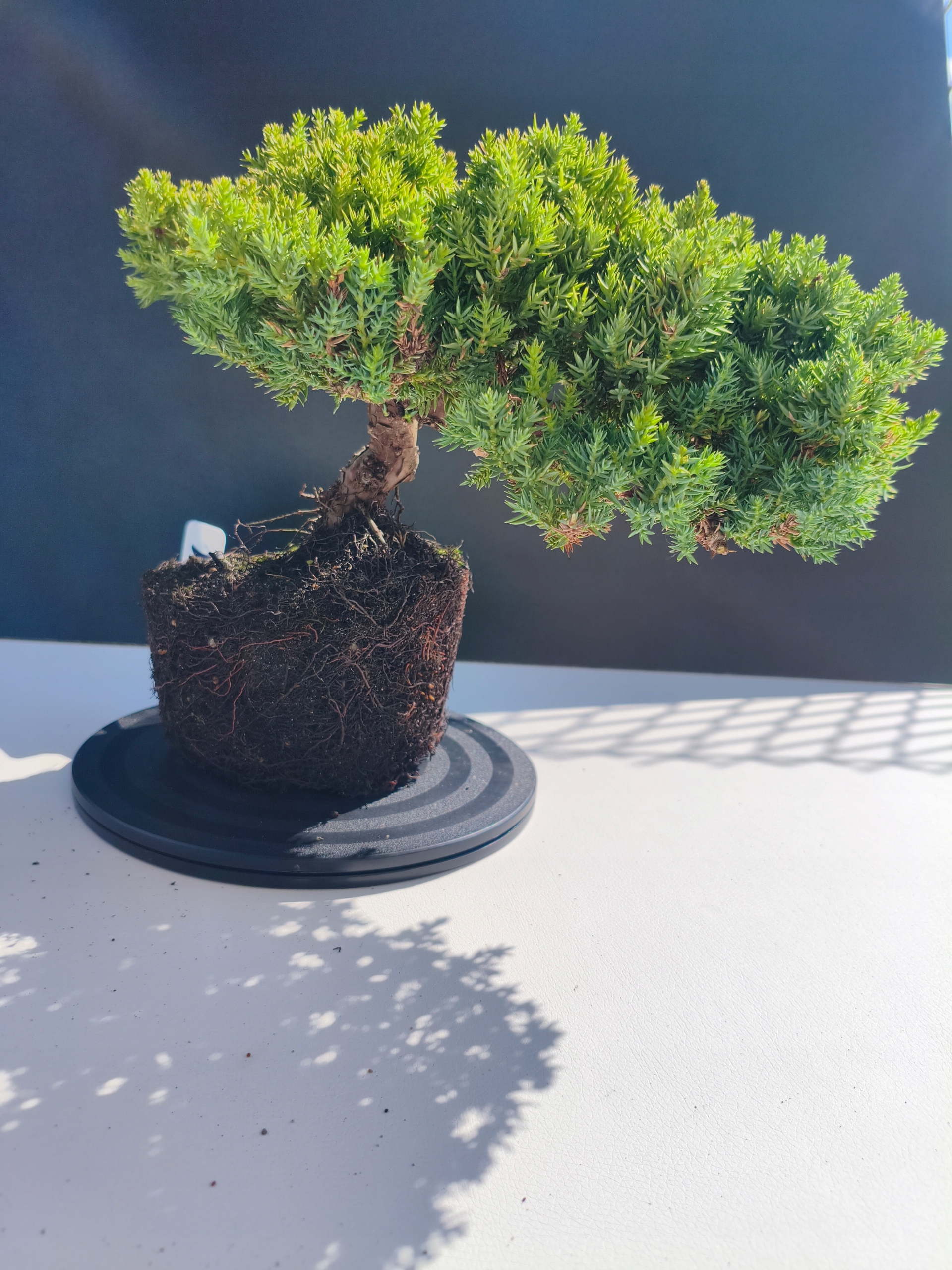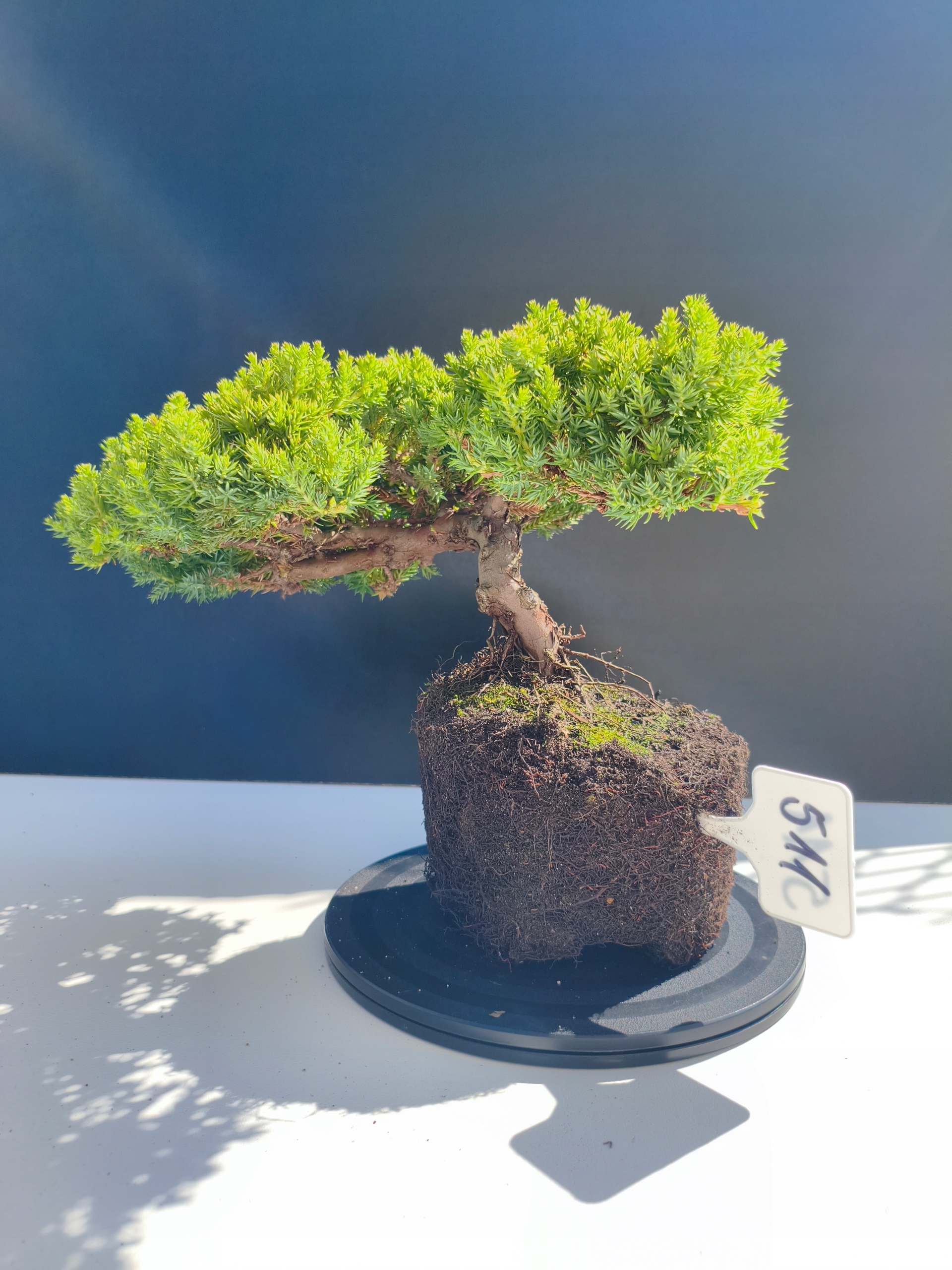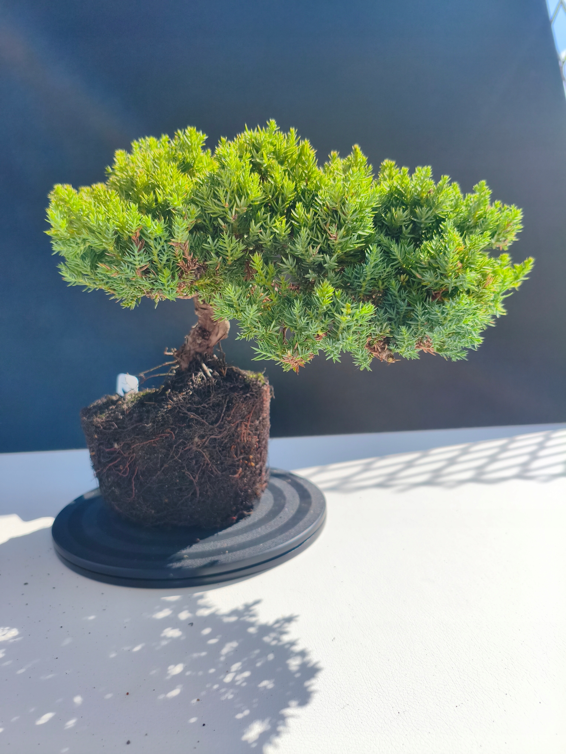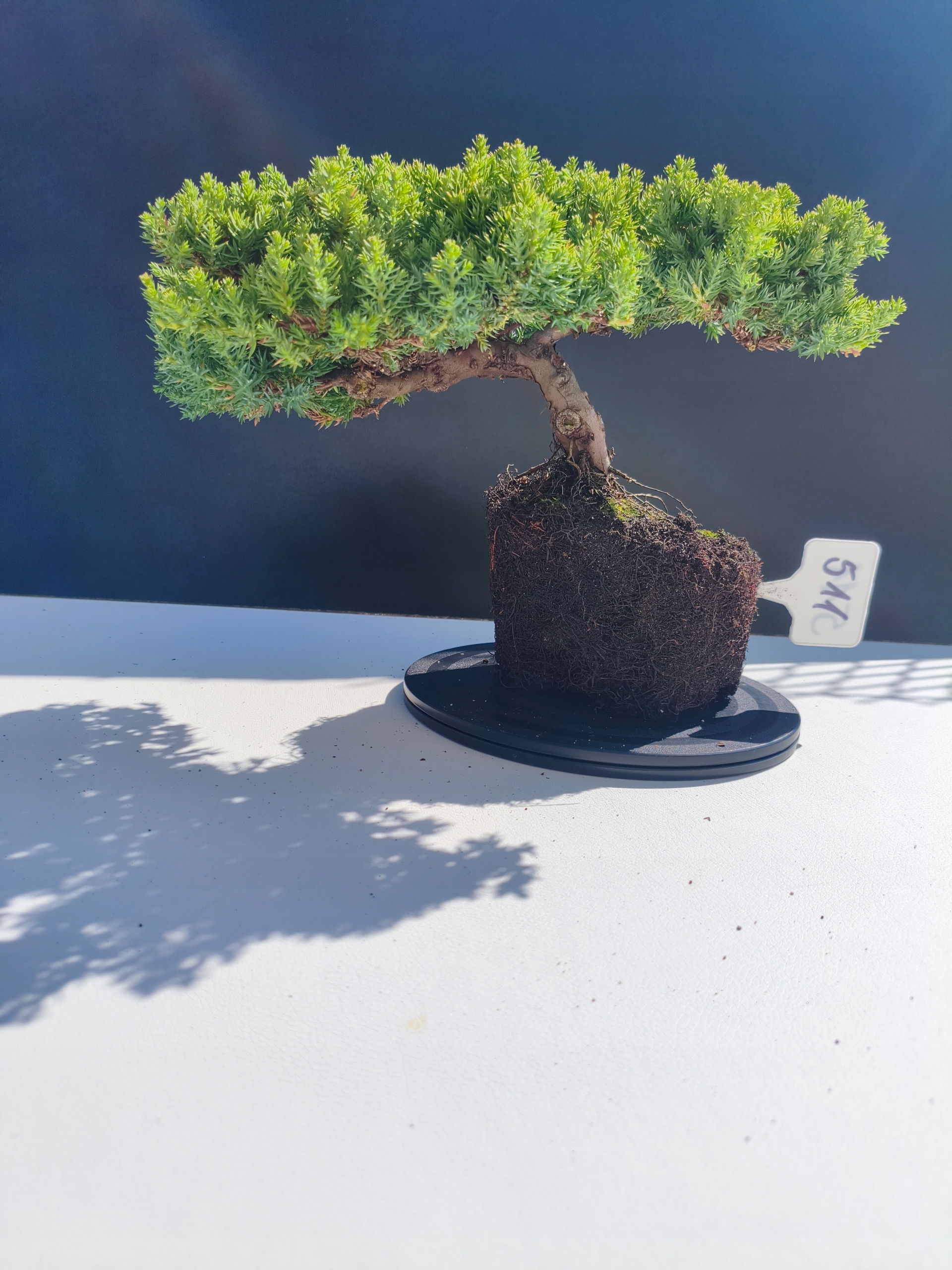 Każde nasze drzewko bonsai to unikalny egzemplarz, dlatego każde zostaje wystawione osobno, ponieważ traktujemy każde indywidualnie – od formowania po pielęgnację. Jałowce te są w naszych rękach od 2021 roku i obecnie mają już 11 lat, dzięki czemu prezentują się wyjątkowo dojrzale i stabilnie.