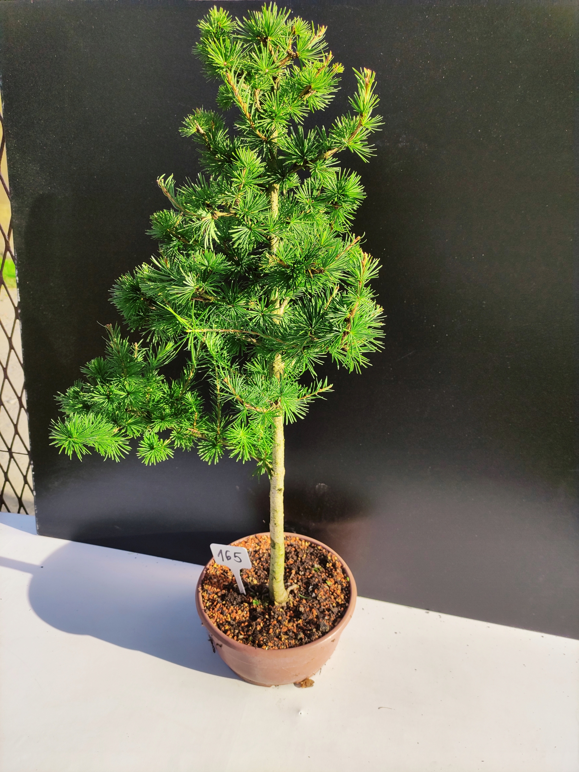 Każde nasze drzewko bonsai to unikalny egzemplarz, dlatego każde zostaje wystawione osobno, ponieważ traktujemy każde indywidualnie – od formowania po pielęgnację. Modrzewie te są w naszych rękach od 2021 roku i obecnie mają już 10 lat, dzięki czemu prezentują się wyjątkowo dojrzale i stabilnie.