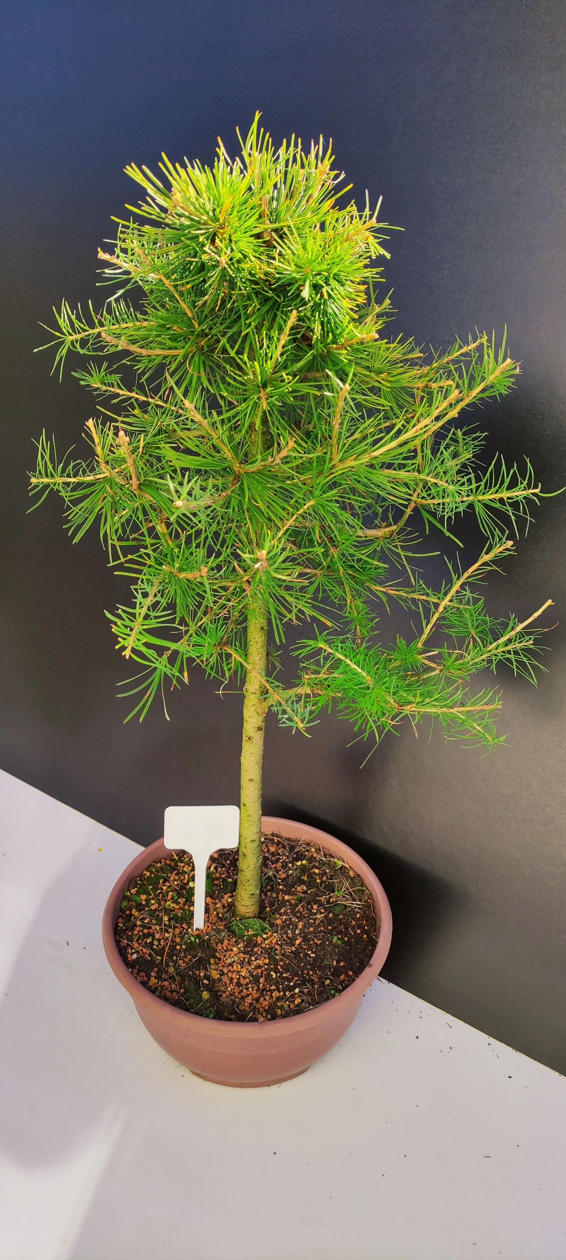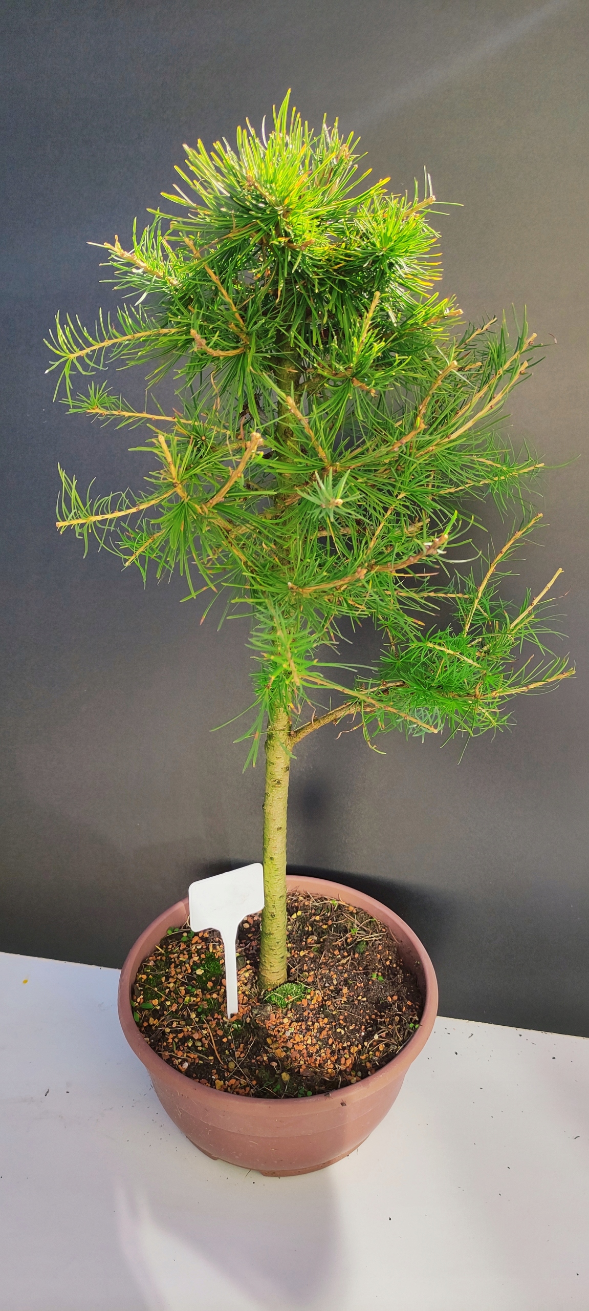 Naturalny rytm – piękno zmienności Modrzew europejski to wyjątkowe bonsai, które jesienią naturalnie zrzuca igły, aby na wiosnę wypuścić nowe, soczyście zielone przyrosty. To jedno z nielicznych drzewek iglastych z tak wyraźnym sezonowym cyklem – co czyni je jeszcze bardziej fascynującym.