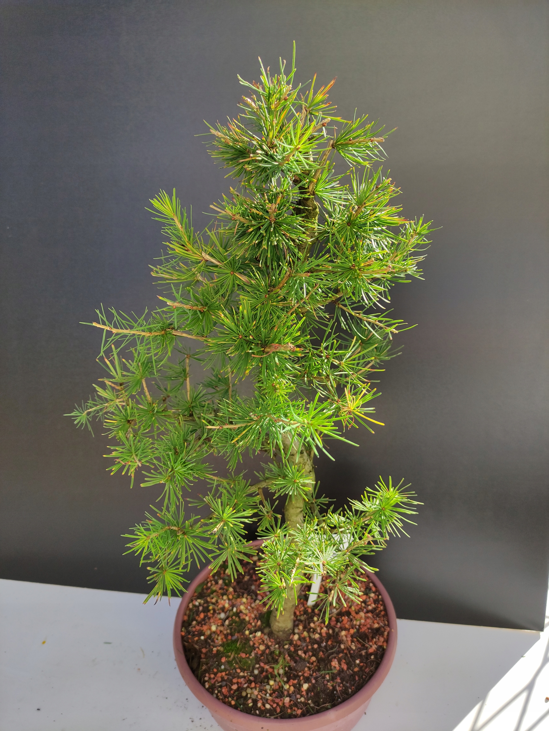 Naturalny rytm – piękno zmienności Modrzew europejski to wyjątkowe bonsai, które jesienią naturalnie zrzuca igły, aby na wiosnę wypuścić nowe, soczyście zielone przyrosty. To jedno z nielicznych drzewek iglastych z tak wyraźnym sezonowym cyklem – co czyni je jeszcze bardziej fascynującym.