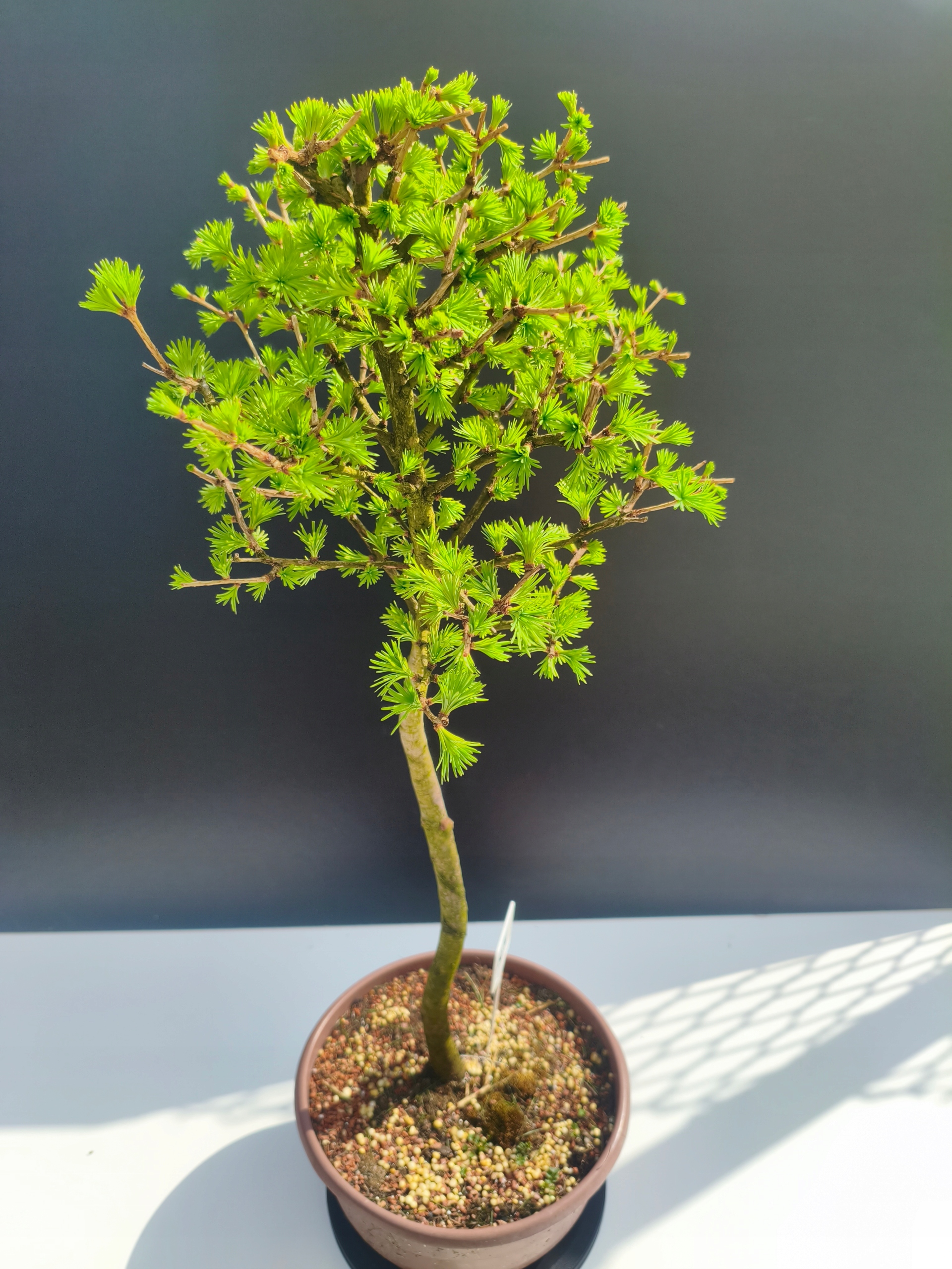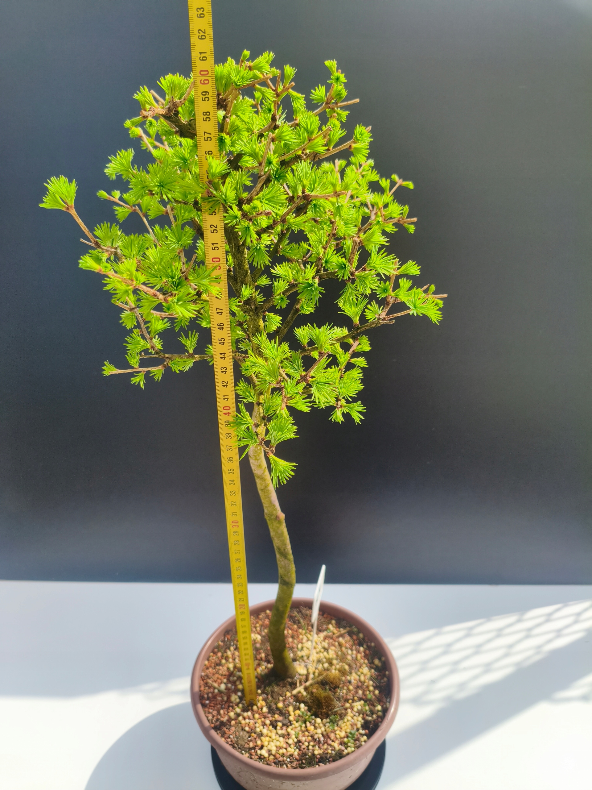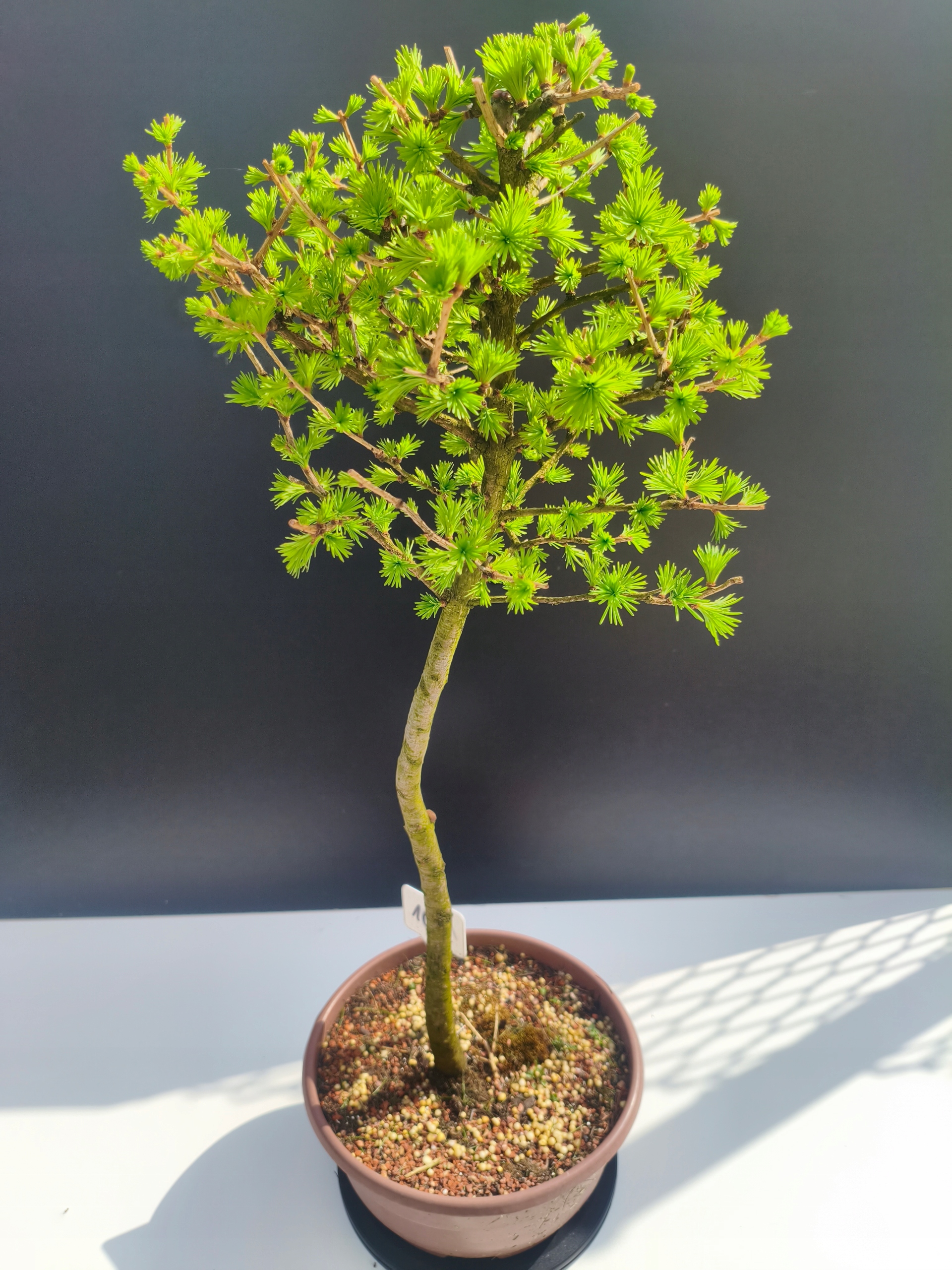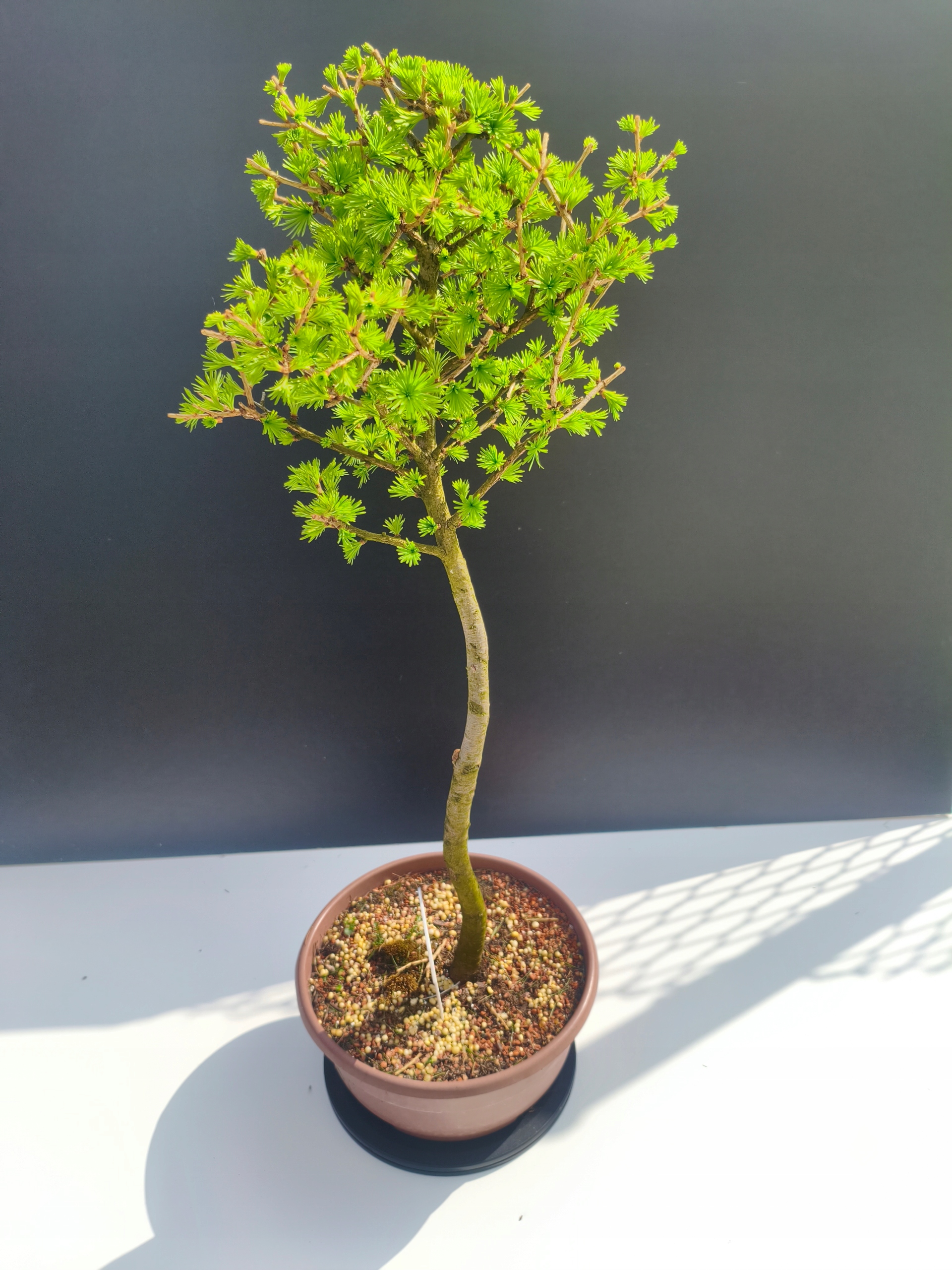 Naturalny rytm – piękno zmienności Modrzew europejski to wyjątkowe bonsai, które jesienią naturalnie zrzuca igły, aby na wiosnę wypuścić nowe, soczyście zielone przyrosty. To jedno z nielicznych drzewek iglastych z tak wyraźnym sezonowym cyklem – co czyni je jeszcze bardziej fascynującym.