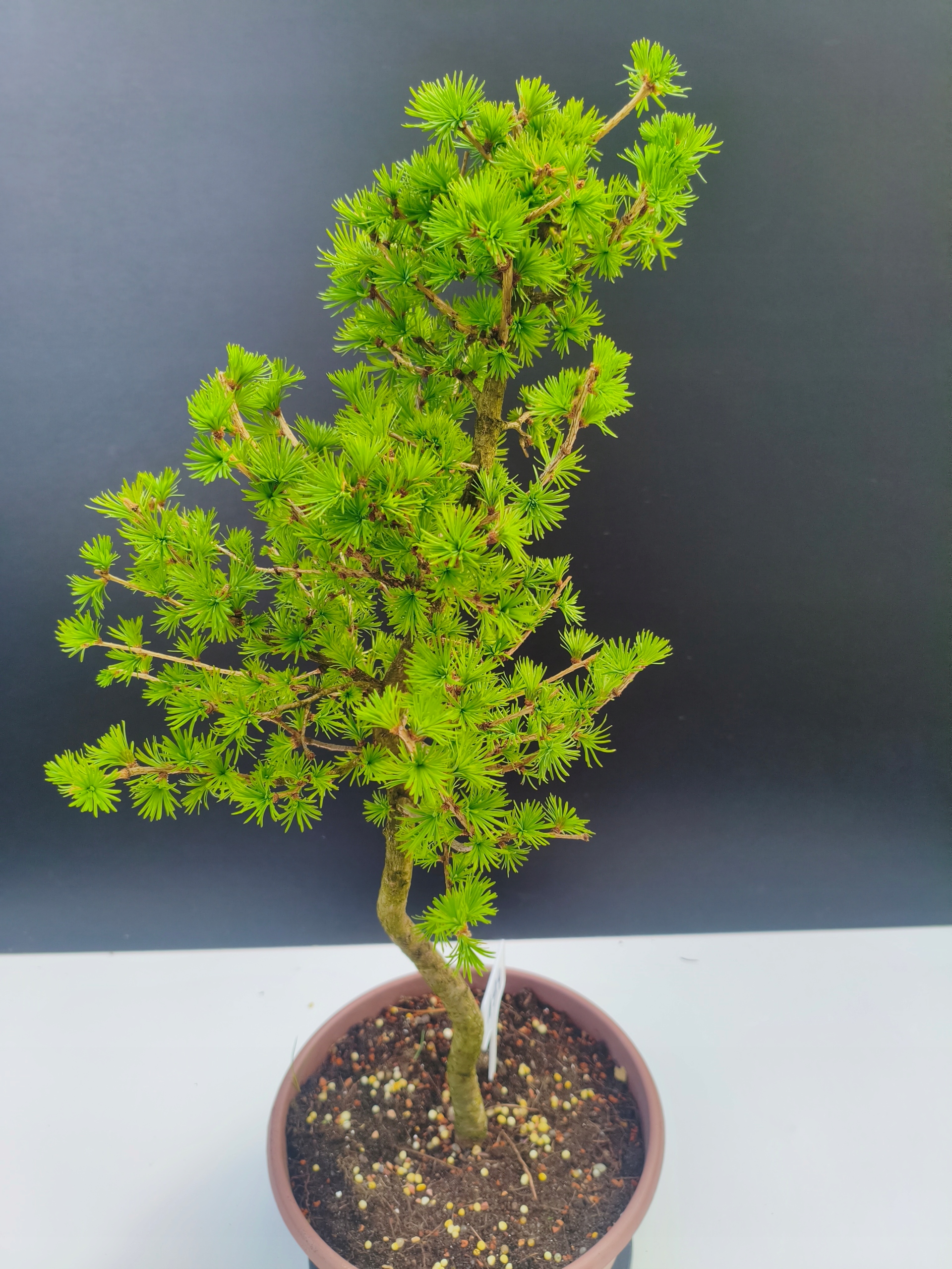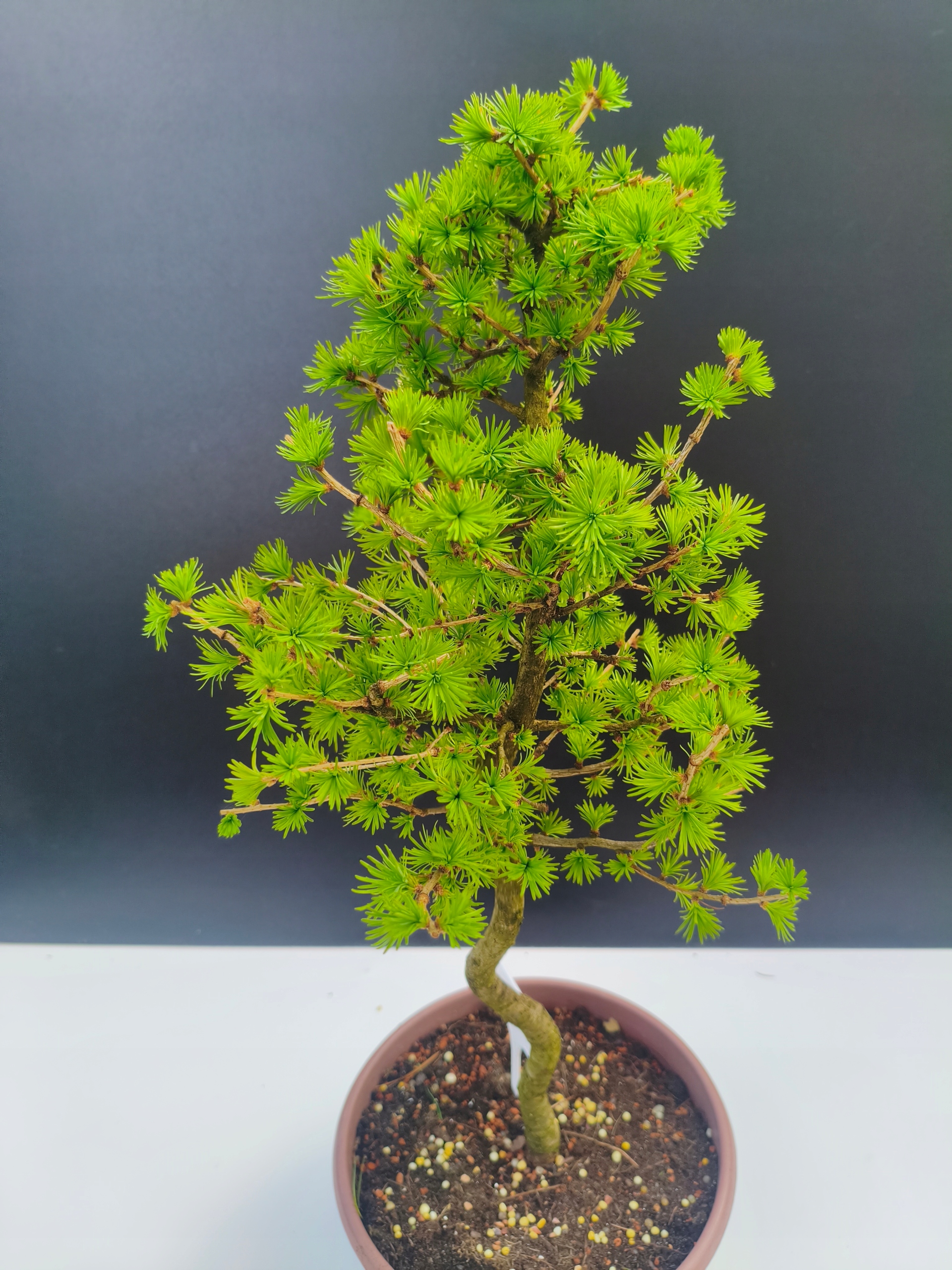 Naturalny rytm – piękno zmienności Modrzew europejski to wyjątkowe bonsai, które jesienią naturalnie zrzuca igły, aby na wiosnę wypuścić nowe, soczyście zielone przyrosty. To jedno z nielicznych drzewek iglastych z tak wyraźnym sezonowym cyklem – co czyni je jeszcze bardziej fascynującym.