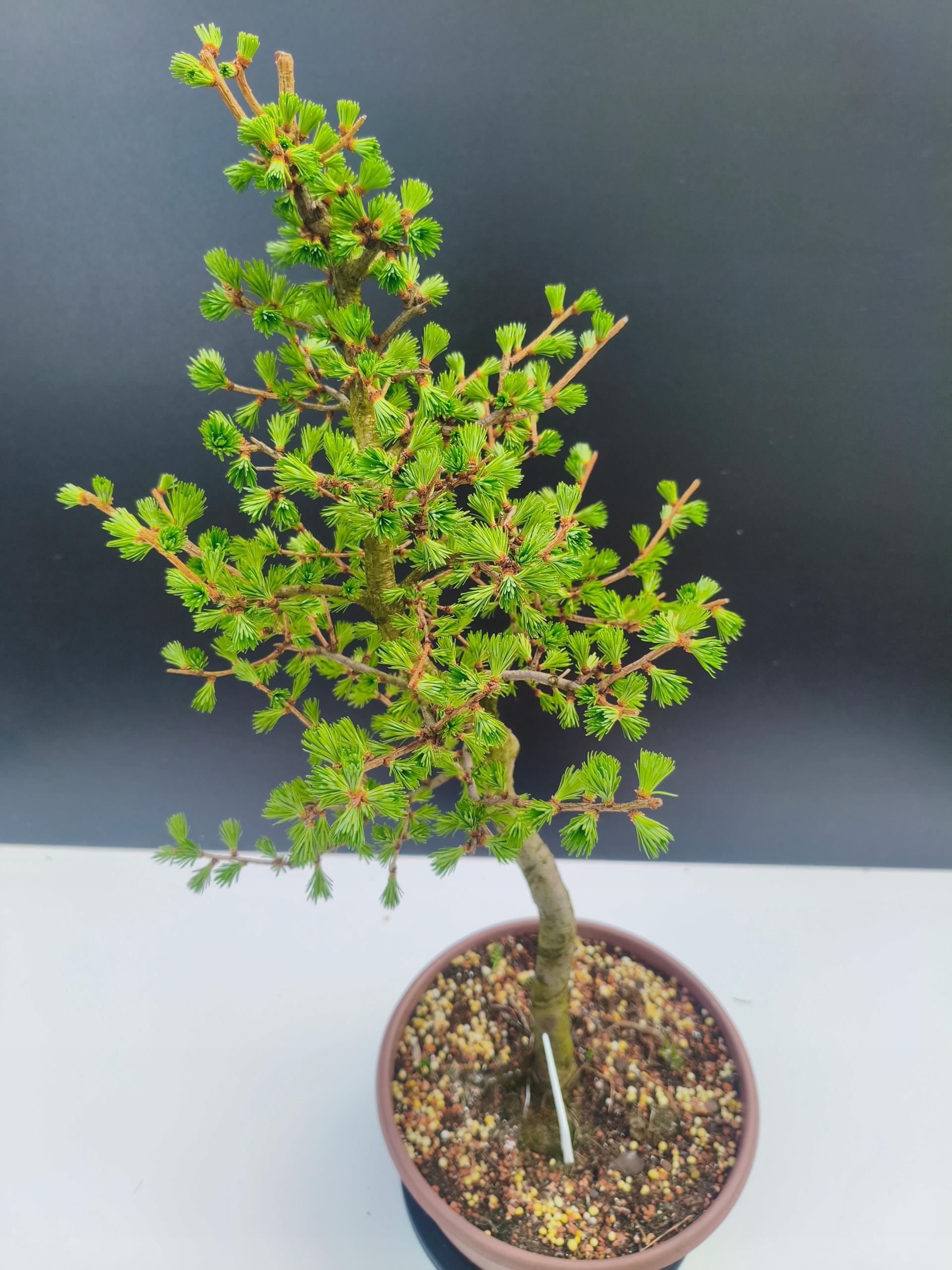 Naturalny rytm – piękno zmienności Modrzew europejski to wyjątkowe bonsai, które jesienią naturalnie zrzuca igły, aby na wiosnę wypuścić nowe, soczyście zielone przyrosty. To jedno z nielicznych drzewek iglastych z tak wyraźnym sezonowym cyklem – co czyni je jeszcze bardziej fascynującym.