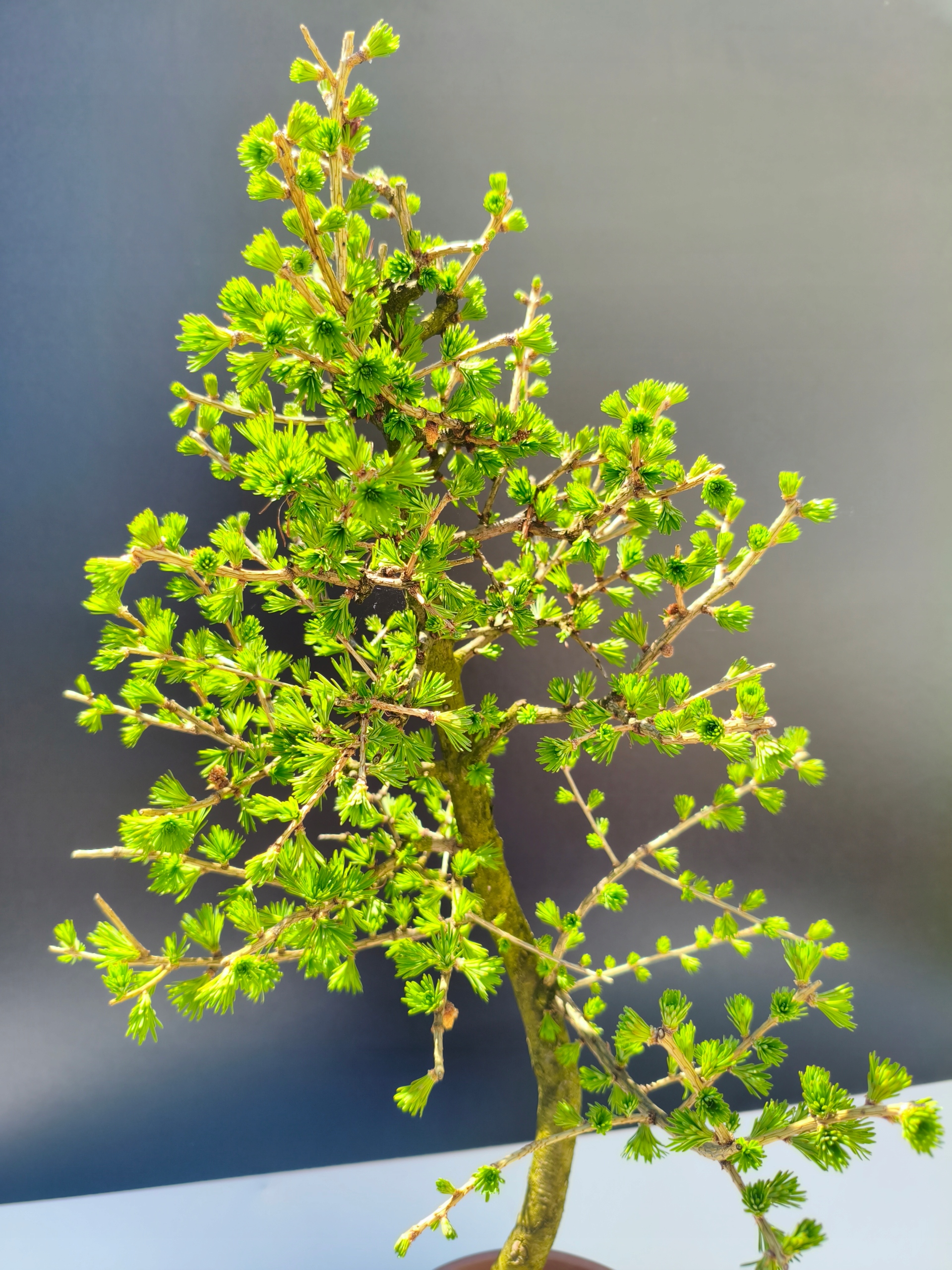 Naturalny rytm – piękno zmienności Modrzew europejski to wyjątkowe bonsai, które jesienią naturalnie zrzuca igły, aby na wiosnę wypuścić nowe, soczyście zielone przyrosty. To jedno z nielicznych drzewek iglastych z tak wyraźnym sezonowym cyklem – co czyni je jeszcze bardziej fascynującym.