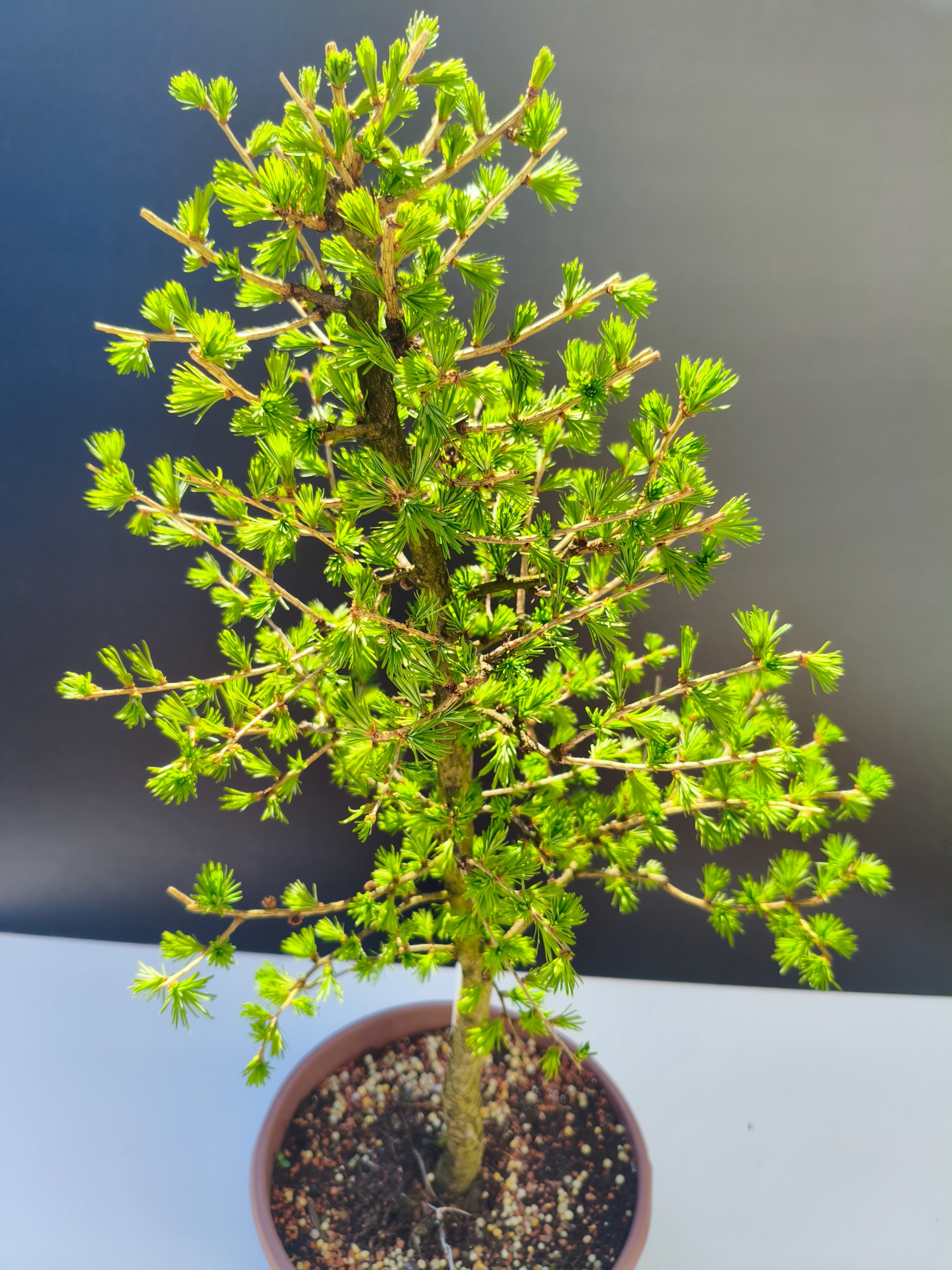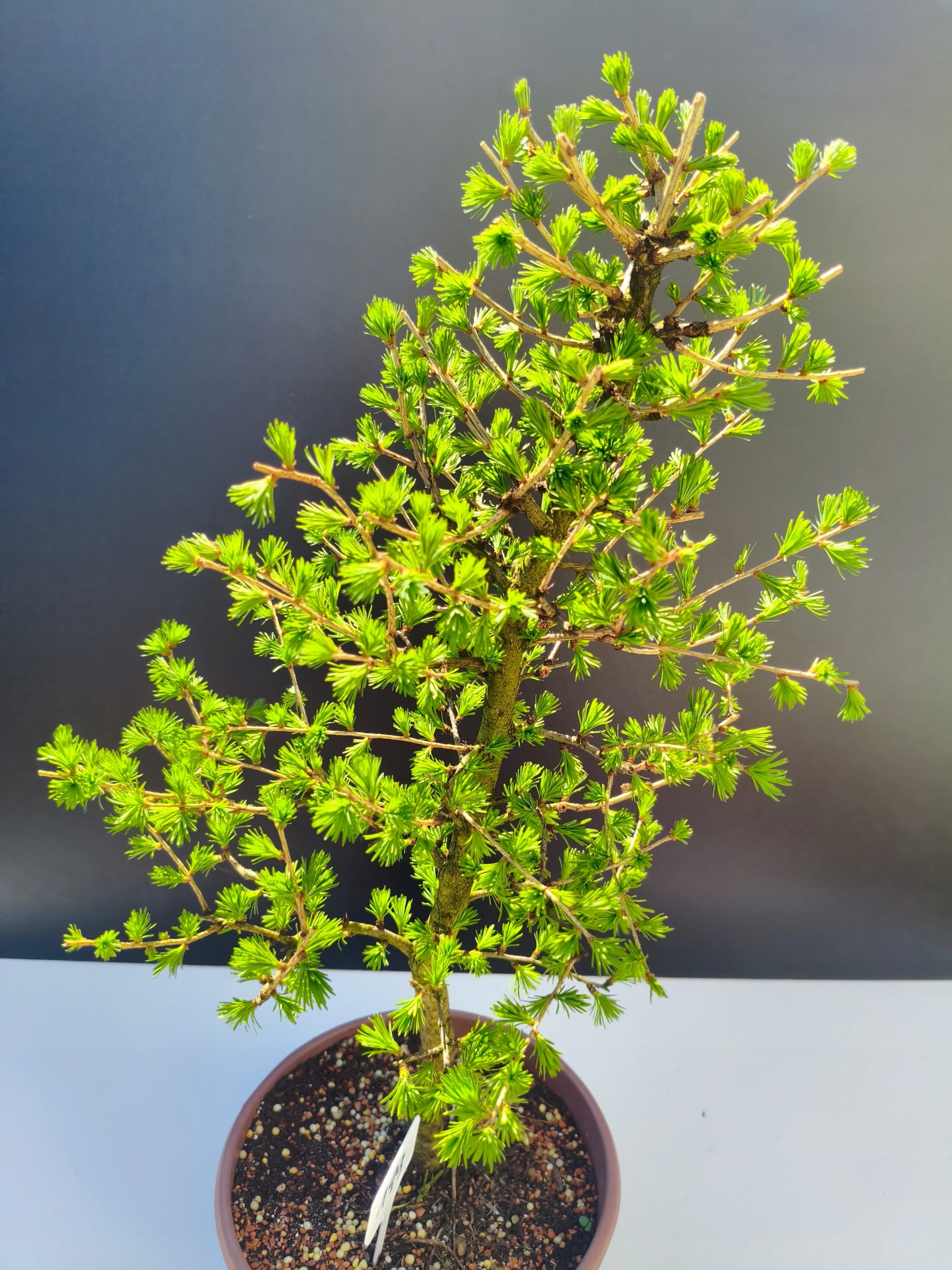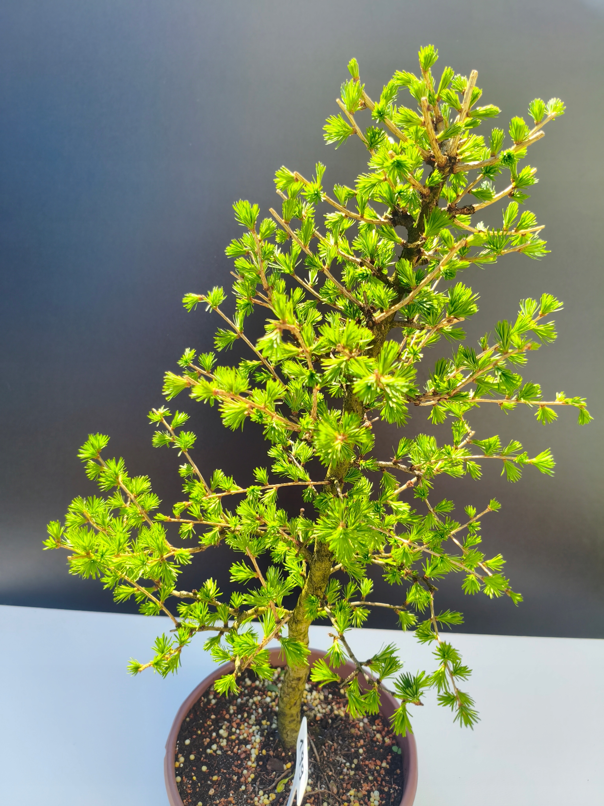 Naturalny rytm – piękno zmienności Modrzew europejski to wyjątkowe bonsai, które jesienią naturalnie zrzuca igły, aby na wiosnę wypuścić nowe, soczyście zielone przyrosty. To jedno z nielicznych drzewek iglastych z tak wyraźnym sezonowym cyklem – co czyni je jeszcze bardziej fascynującym.