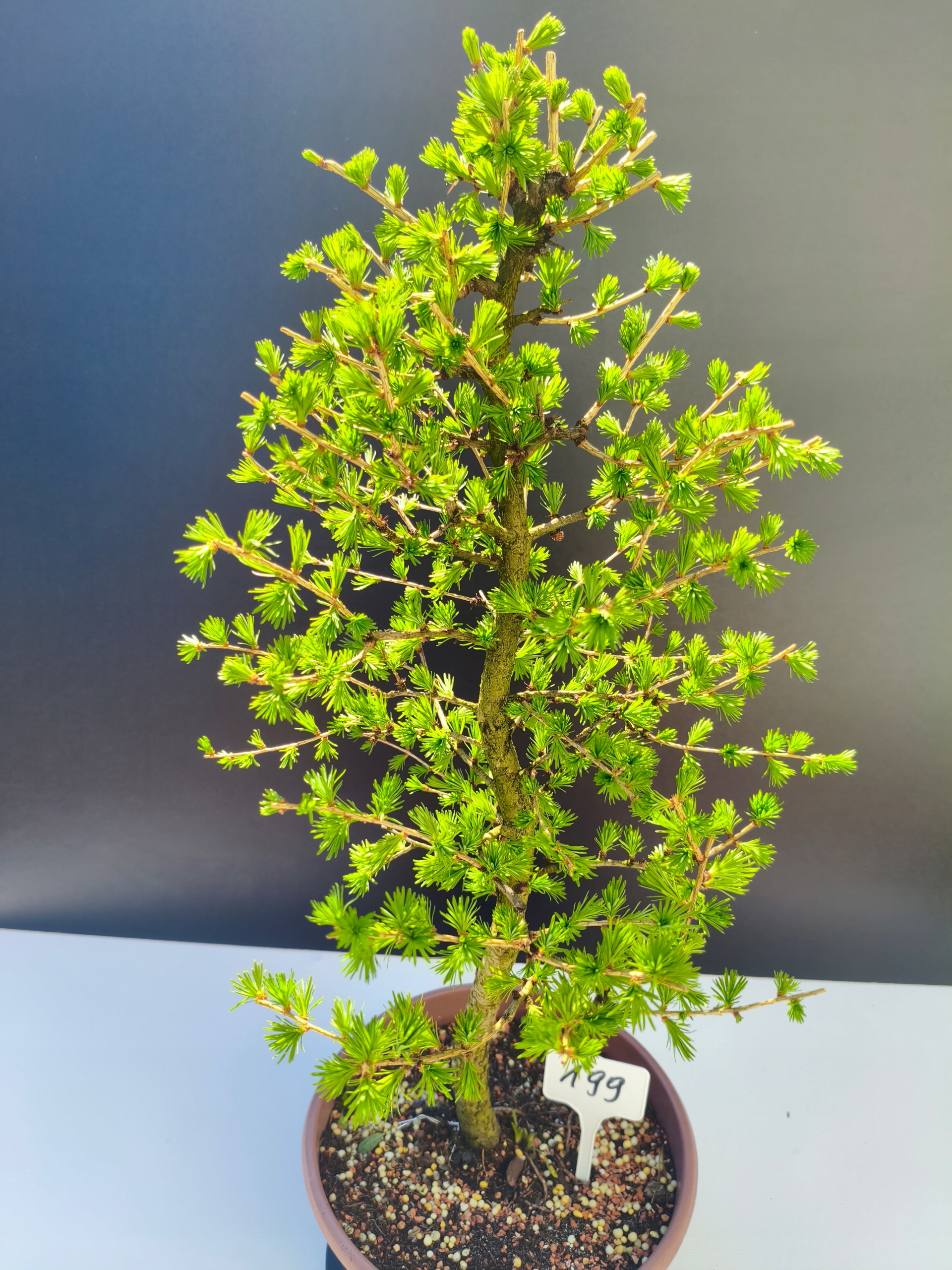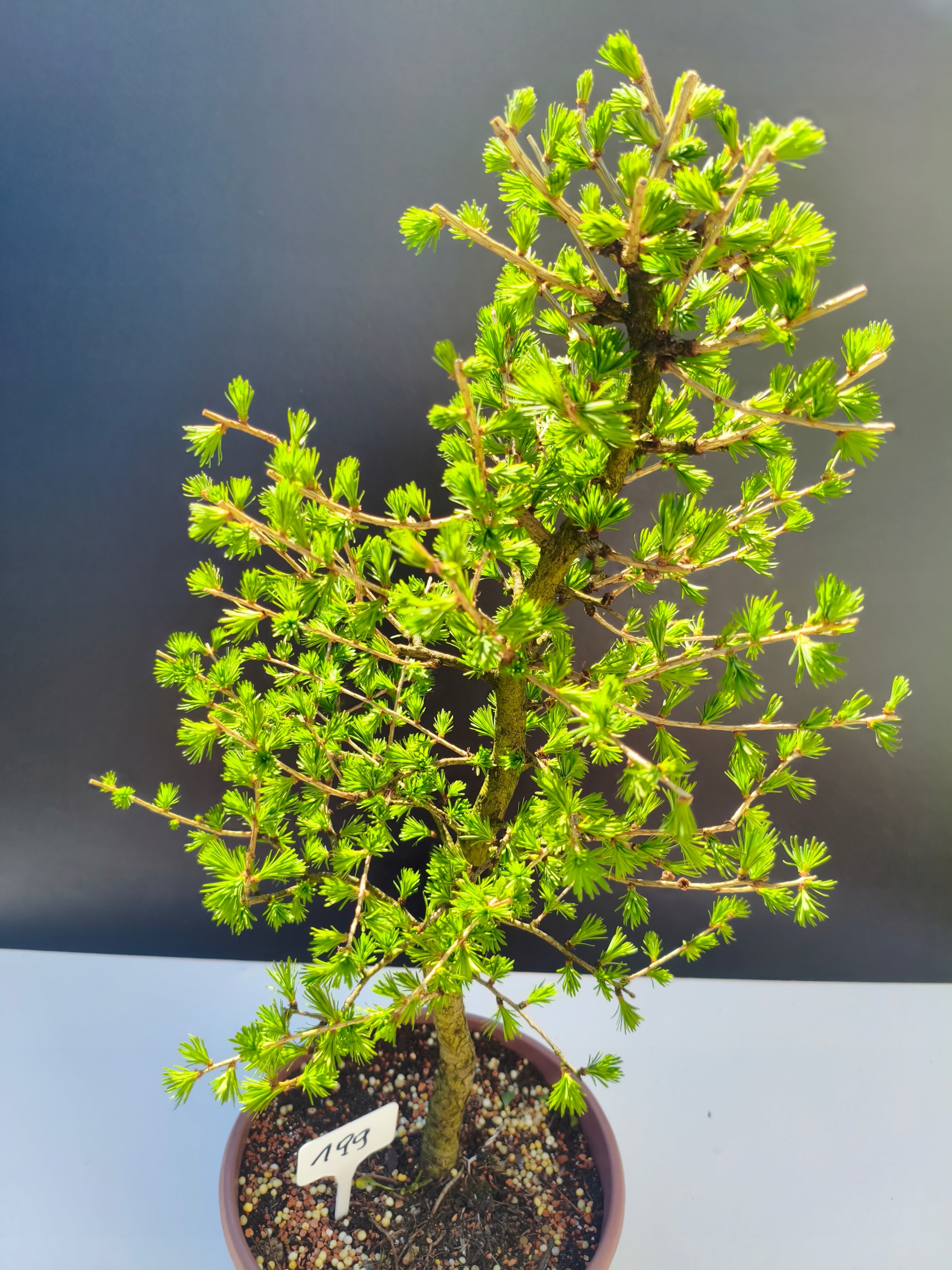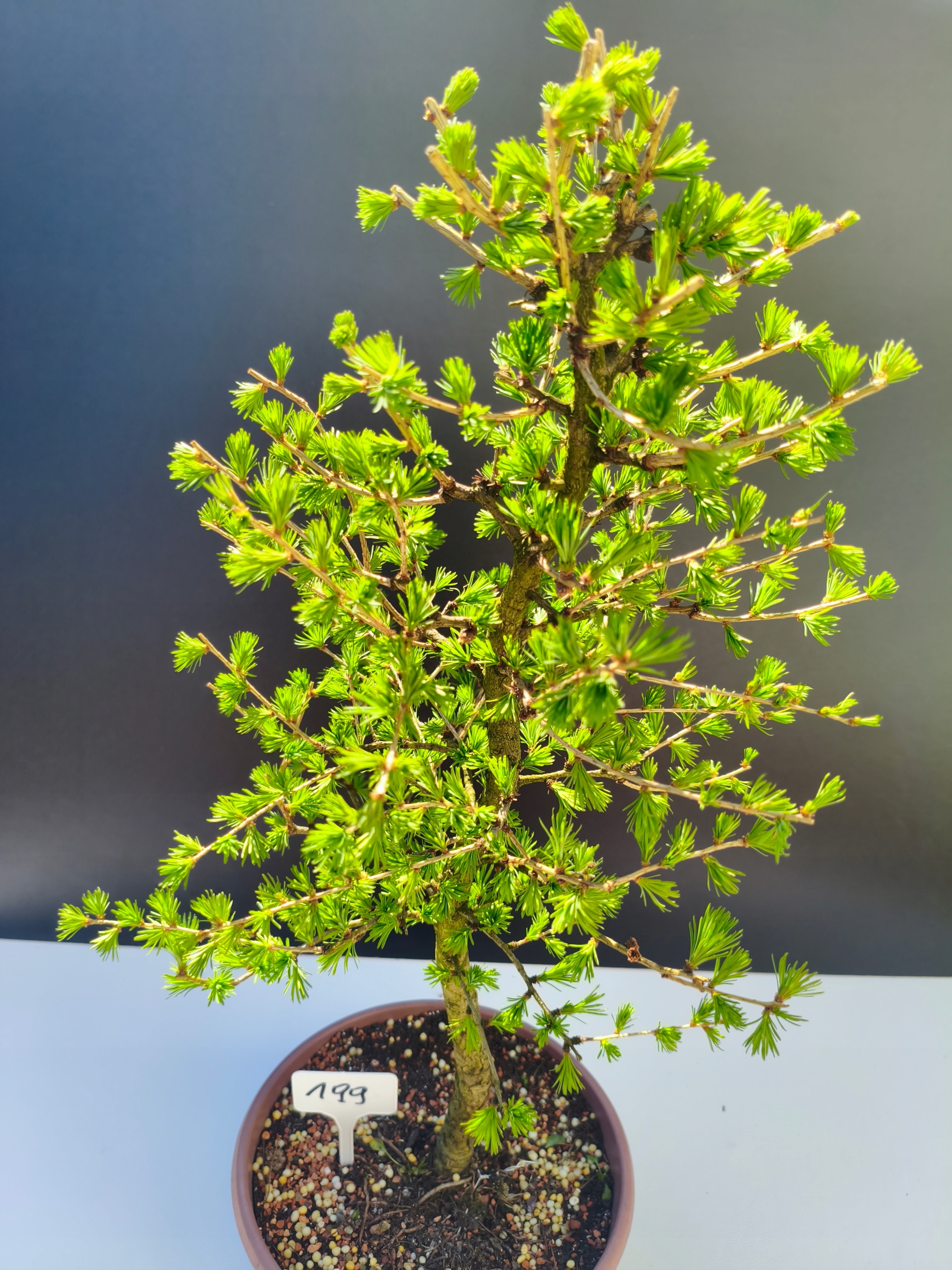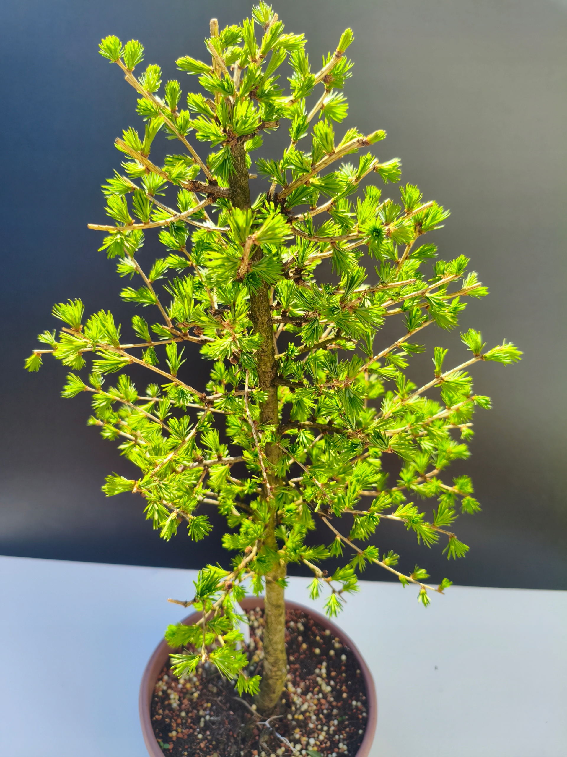 Naturalny rytm – piękno zmienności Modrzew europejski to wyjątkowe bonsai, które jesienią naturalnie zrzuca igły, aby na wiosnę wypuścić nowe, soczyście zielone przyrosty. To jedno z nielicznych drzewek iglastych z tak wyraźnym sezonowym cyklem – co czyni je jeszcze bardziej fascynującym.
