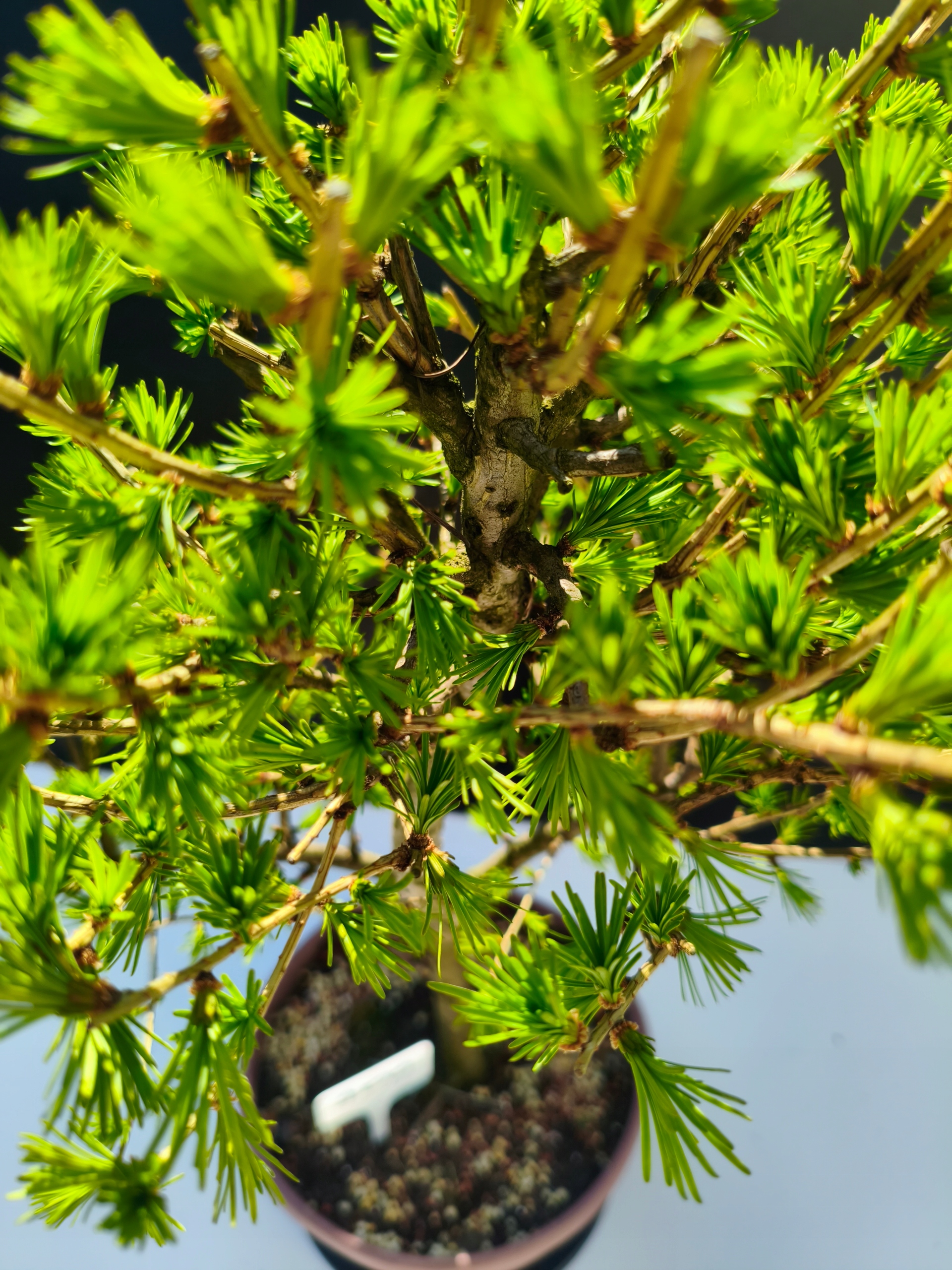 Naturalny rytm – piękno zmienności Modrzew europejski to wyjątkowe bonsai, które jesienią naturalnie zrzuca igły, aby na wiosnę wypuścić nowe, soczyście zielone przyrosty. To jedno z nielicznych drzewek iglastych z tak wyraźnym sezonowym cyklem – co czyni je jeszcze bardziej fascynującym.
