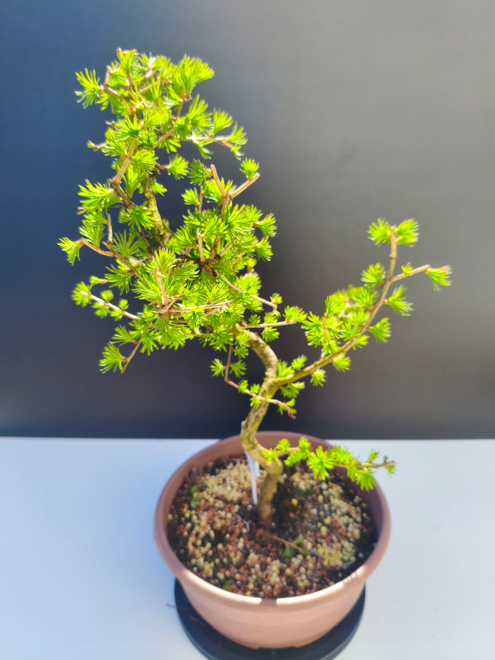 Naturalny rytm – piękno zmienności Modrzew europejski to wyjątkowe bonsai, które jesienią naturalnie zrzuca igły, aby na wiosnę wypuścić nowe, soczyście zielone przyrosty. To jedno z nielicznych drzewek iglastych z tak wyraźnym sezonowym cyklem – co czyni je jeszcze bardziej fascynującym.