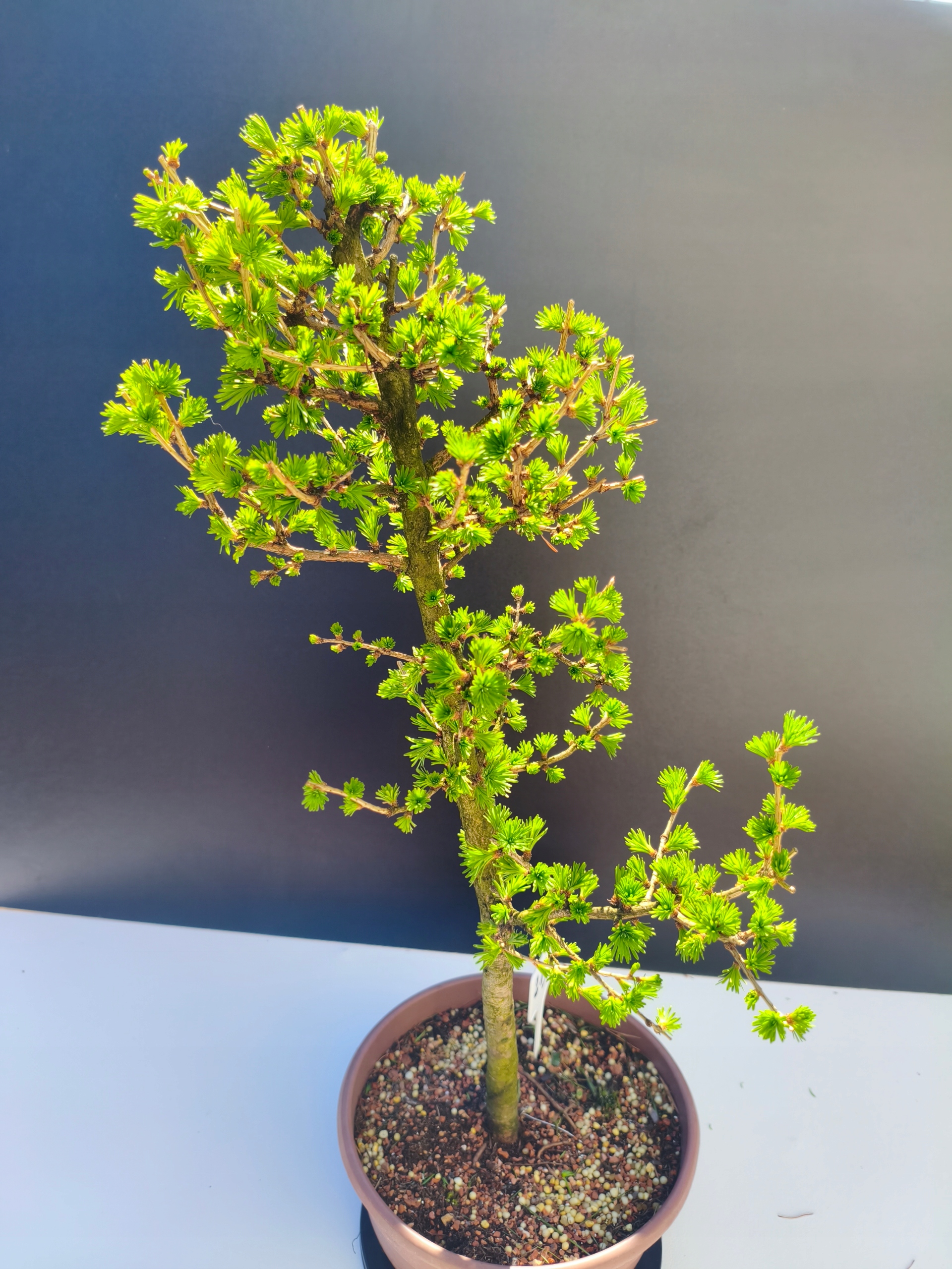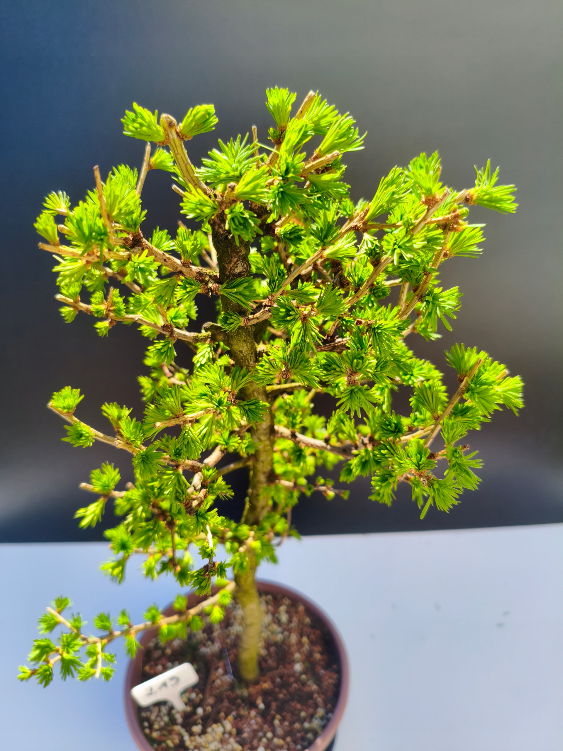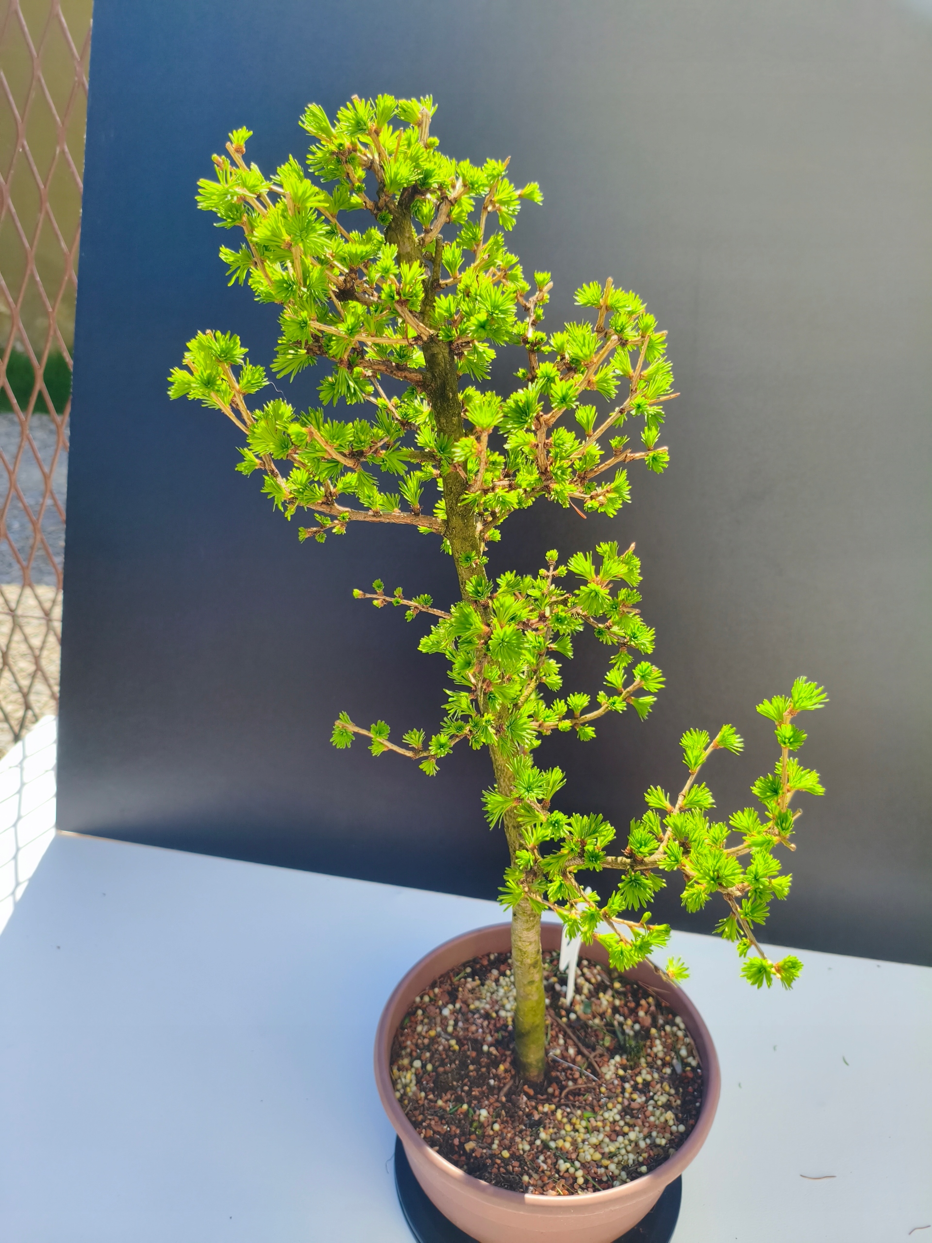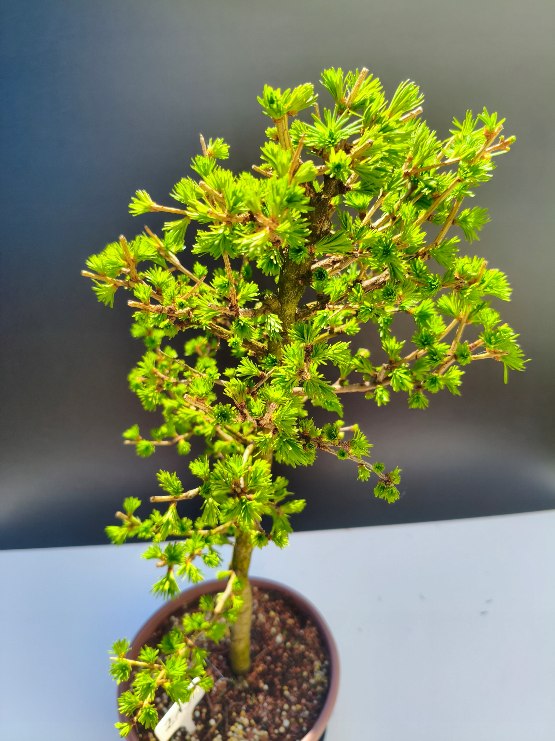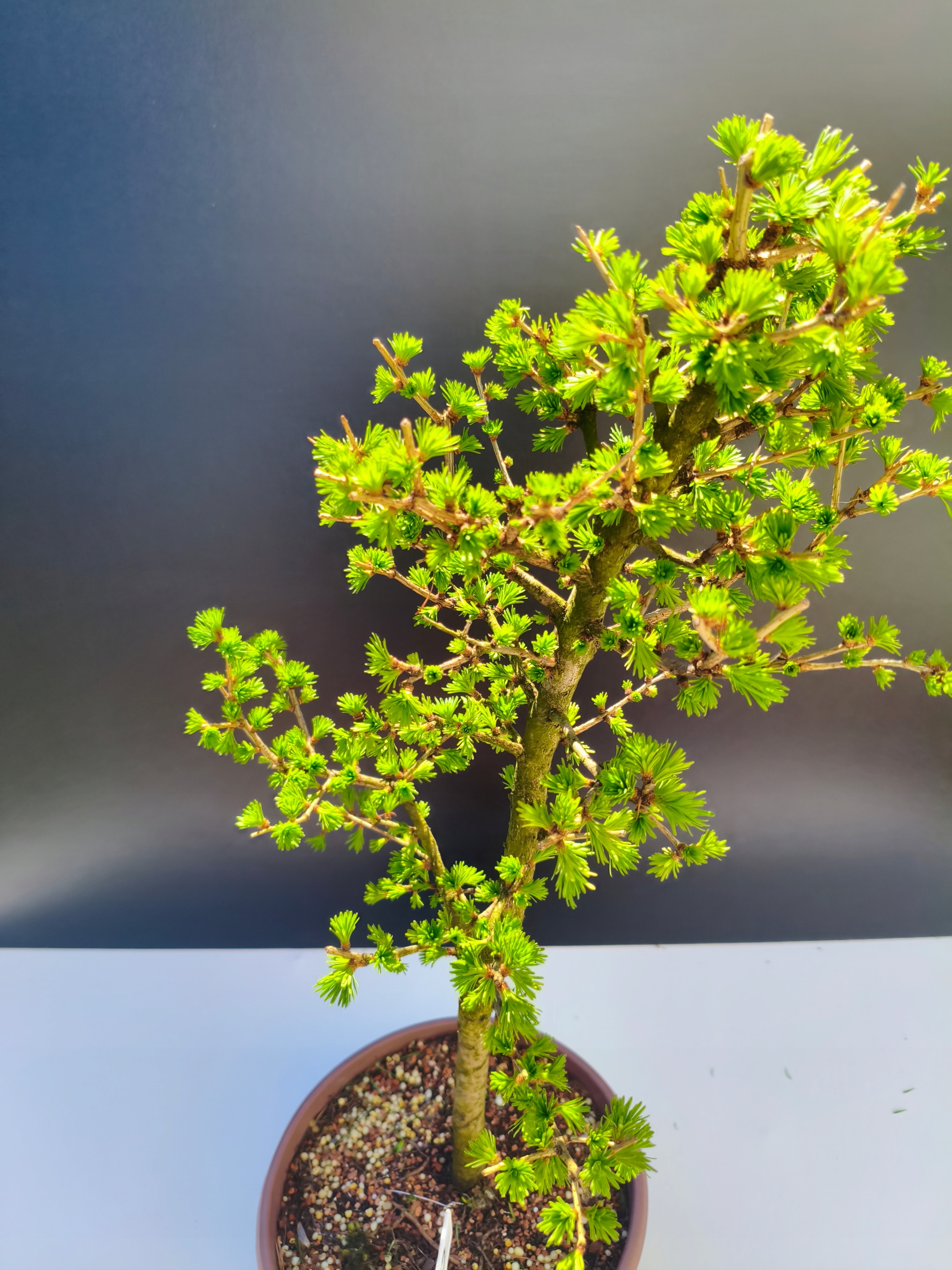 Naturalny rytm – piękno zmienności Modrzew europejski to wyjątkowe bonsai, które jesienią naturalnie zrzuca igły, aby na wiosnę wypuścić nowe, soczyście zielone przyrosty. To jedno z nielicznych drzewek iglastych z tak wyraźnym sezonowym cyklem – co czyni je jeszcze bardziej fascynującym.