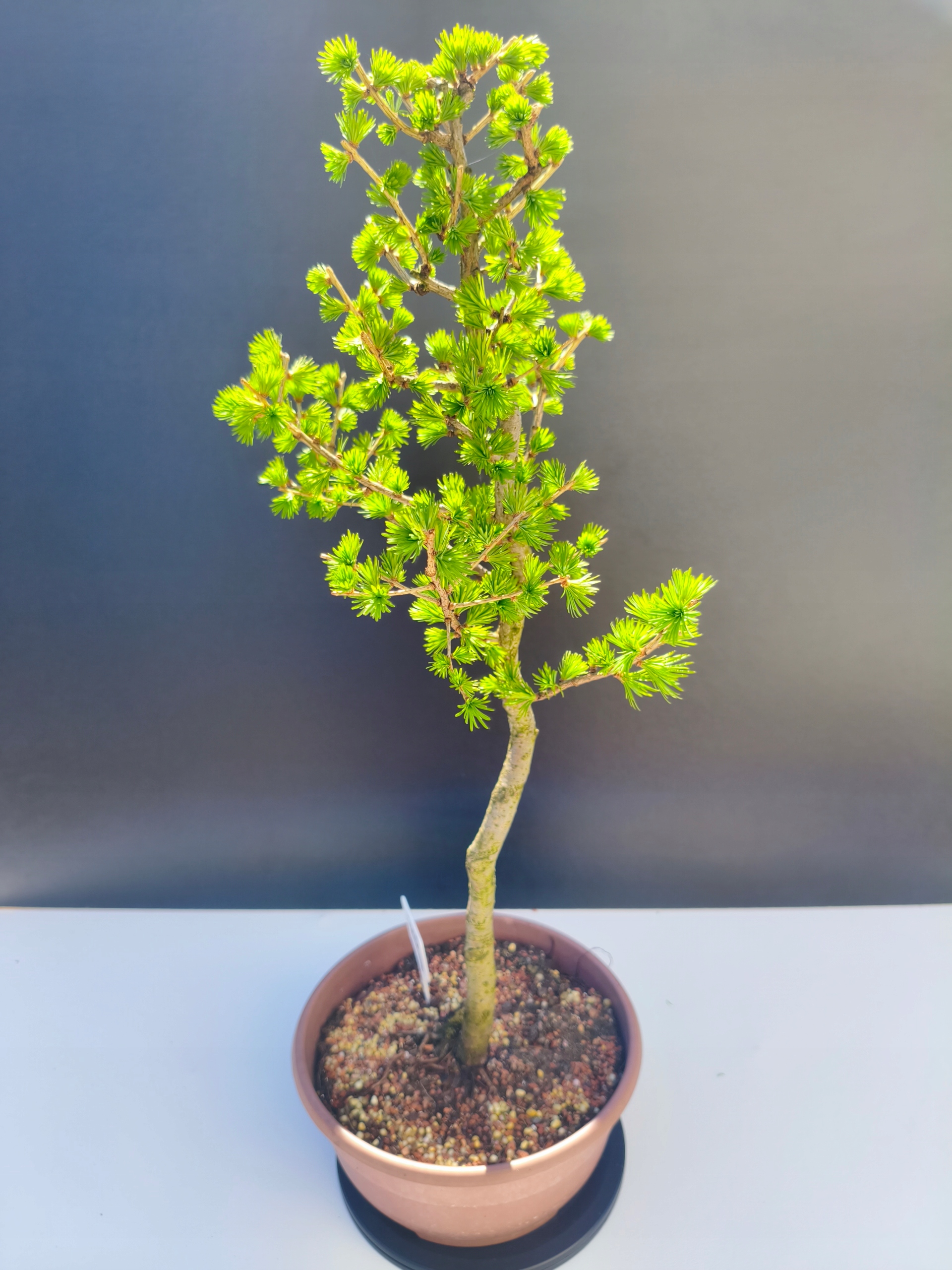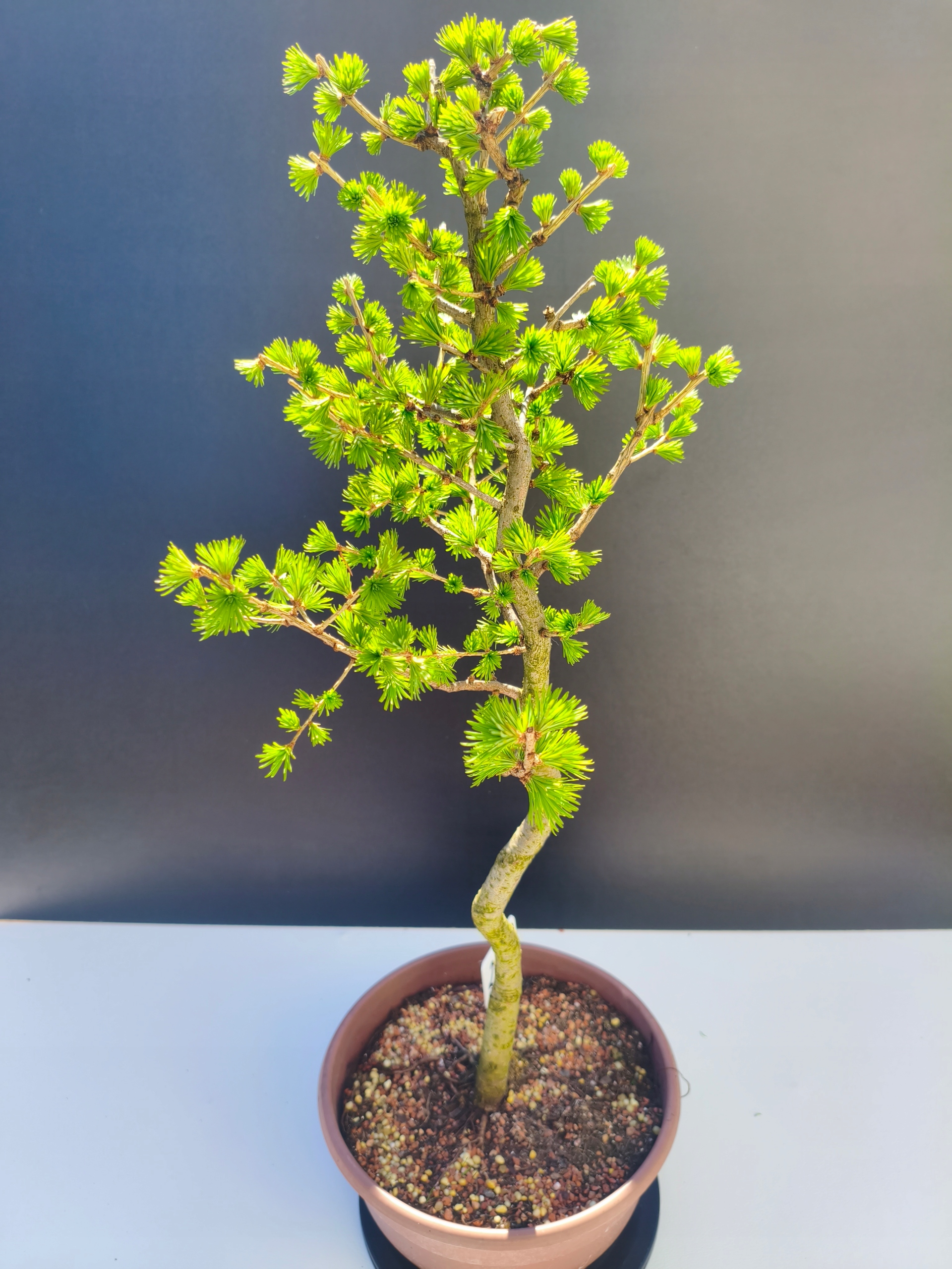 Naturalny rytm – piękno zmienności Modrzew europejski to wyjątkowe bonsai, które jesienią naturalnie zrzuca igły, aby na wiosnę wypuścić nowe, soczyście zielone przyrosty. To jedno z nielicznych drzewek iglastych z tak wyraźnym sezonowym cyklem – co czyni je jeszcze bardziej fascynującym.